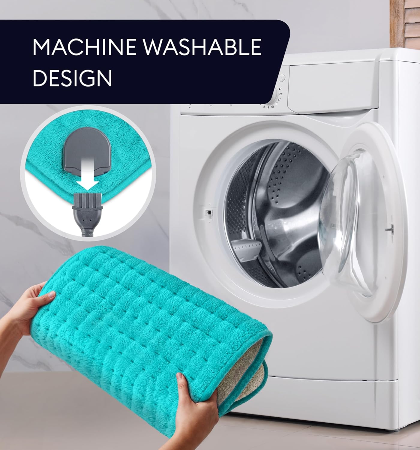 - LOW MAINTENANCE, MACHINE WASHABLE: The Geniani Heating Pad for Back Pain Relief measures 12âx24â to maximize surface area coverage, making it perfect for use on large areas such as your back, stomach, legs, and more. Our XL heating pads are easily foldable, compact for convenient storage & portable! Effortless to keep fresh & clean, the back heating pad is machine washable. Simply remove the connector cable from the pad & toss in with your laundry on the warm, gentle cycle.