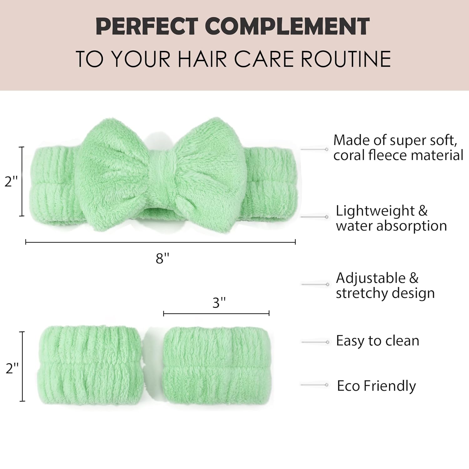 Ayesha Green Spa Headband and Wristband Set for Skincare Makeup Headband Wrist Cuffs for Washing Face Bubble Skincare Hairband for Women Girls