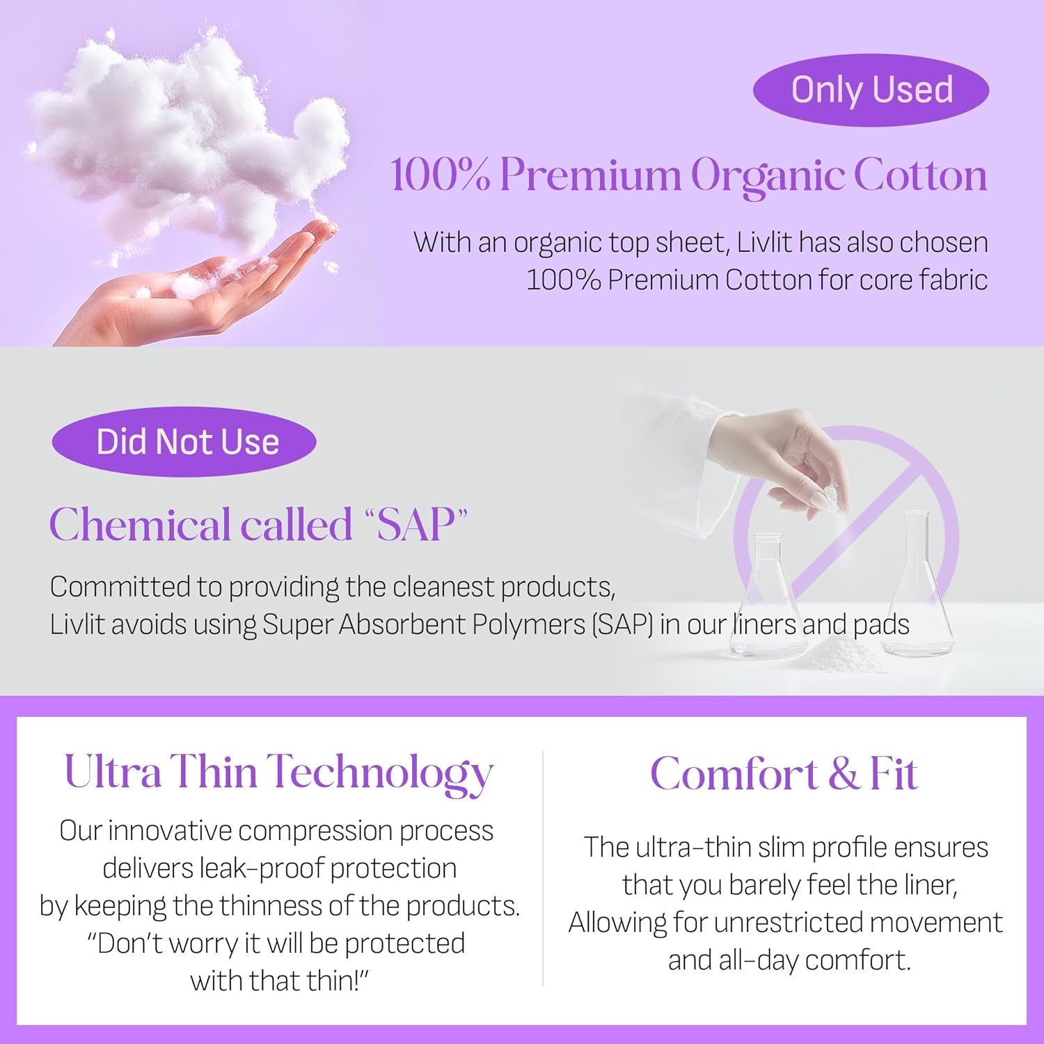 - UNPARALLELED COMFORT IN ULTRA-THIN DESIGN: Redefine your period experience with Livlit's ultra-thin innovation. From bustling days to serene evenings, our discreet protection and comfort ensure you stay at ease, always.