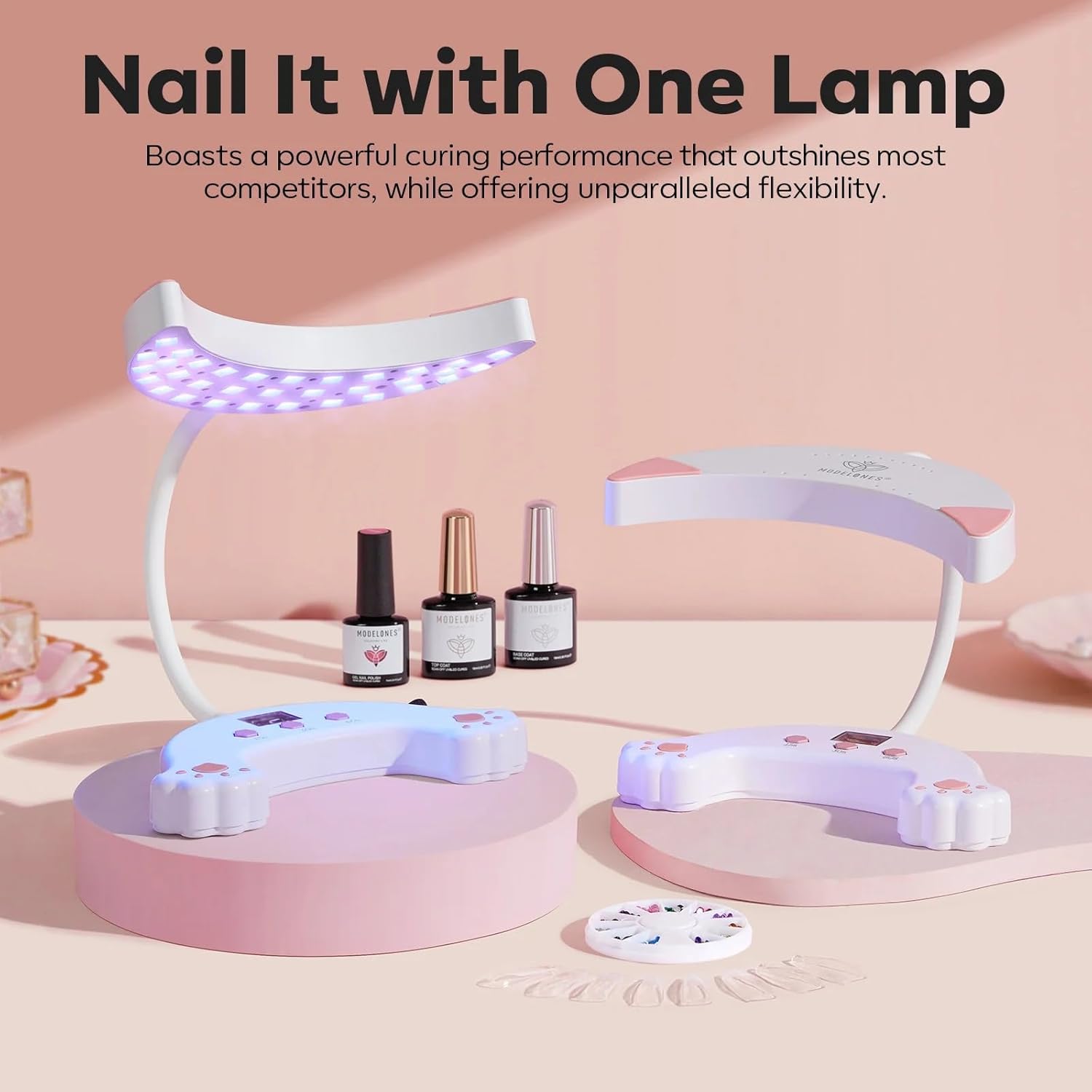 - UPGRADED UV Nail Lamp: Modelones innovative LED nail lamp not only has the super drying ability of a manicure lamp but also has the flexible design of a gooseneck lamp and the convenient extension ability of single finger lamp. Nail It Just One Lamp