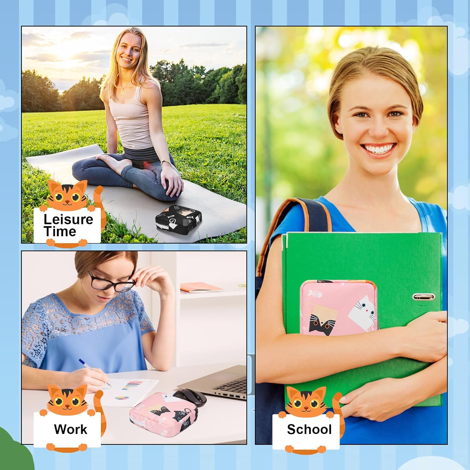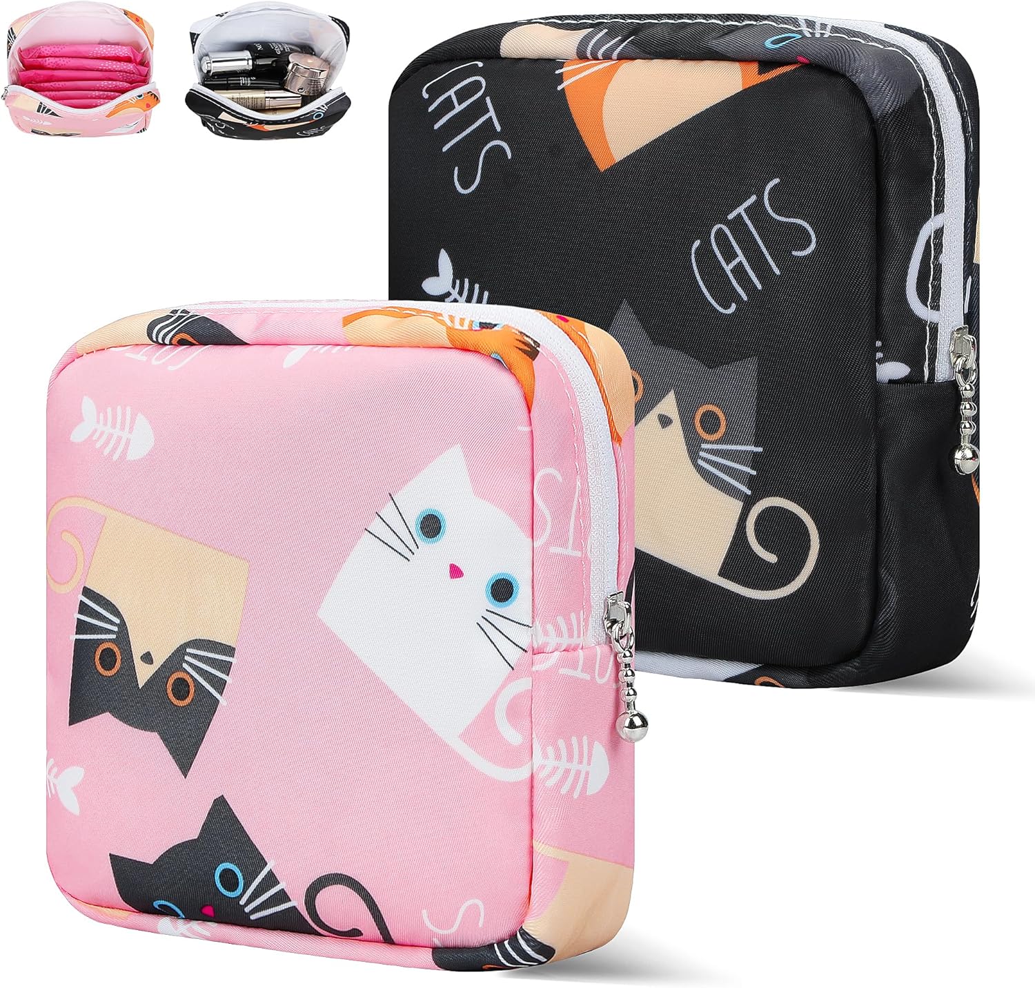 Period Bag Pouch, Canvas Sanitary Napkin Storage Bag for Girls Womens, Portable Sanitary Napkin Period Pad Pouch for Purse, Small Make Up Bags(Cat, Pink)