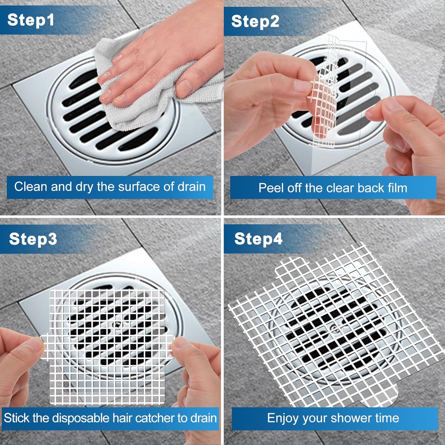- CONVENIENT & CLEANING: Stick it on the drain, then simply peel off the sticker and toss it along with your hair in the trash-that is the way how to use this disposable shower drain hair catcher. It is very easy to install and remove but works efficiently to prevent your drain from being clogged. No need to clean, just toss the hair catcher when it is full of hair.
