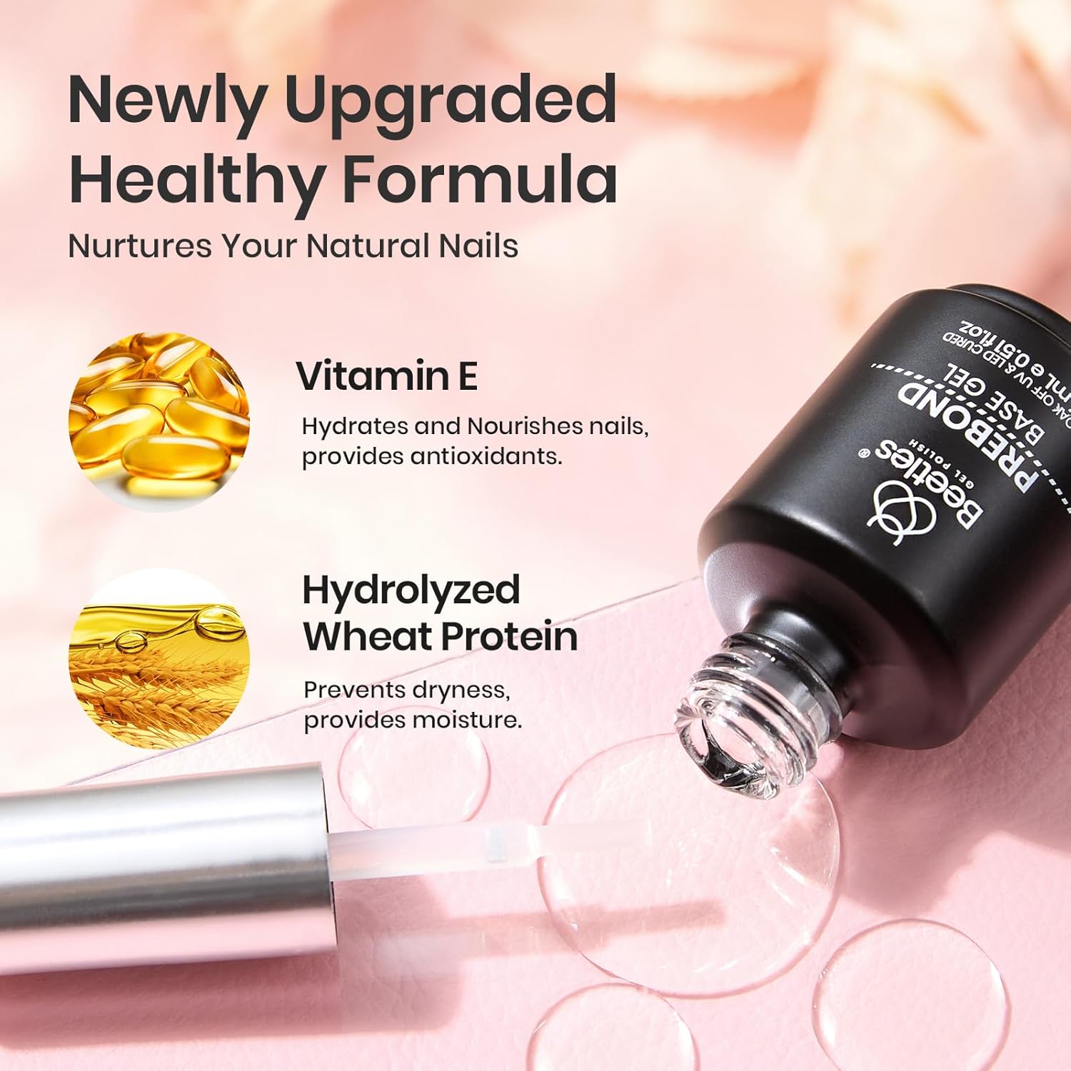 Beetles Gel Polish Gel Base Coat, 15ml Prebond Base Gel Nail Polish Long Lasting Soak Off U V Nail Lamp Base Coat Upgraded Formula for Salon DIY Design Manicure Gifts for Women