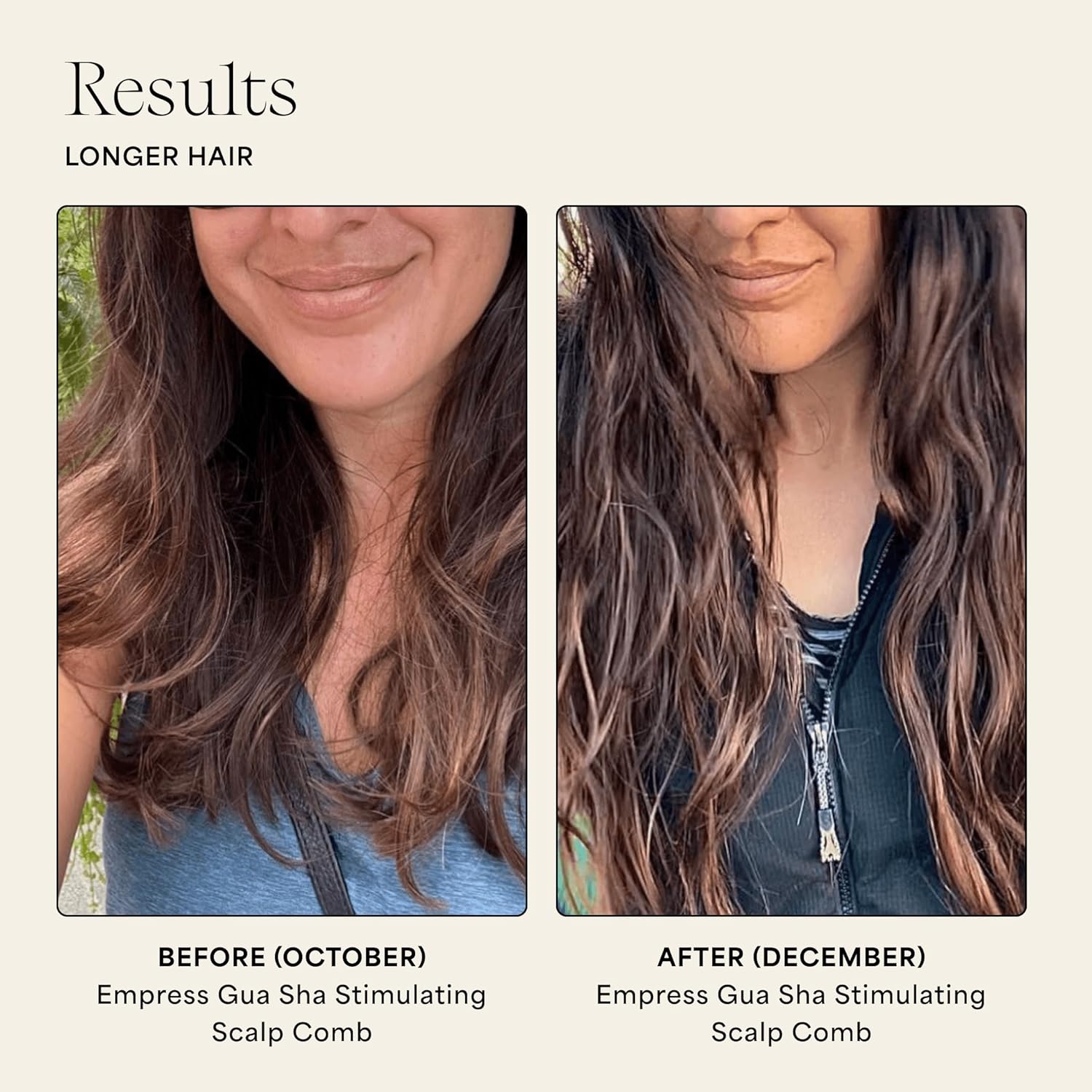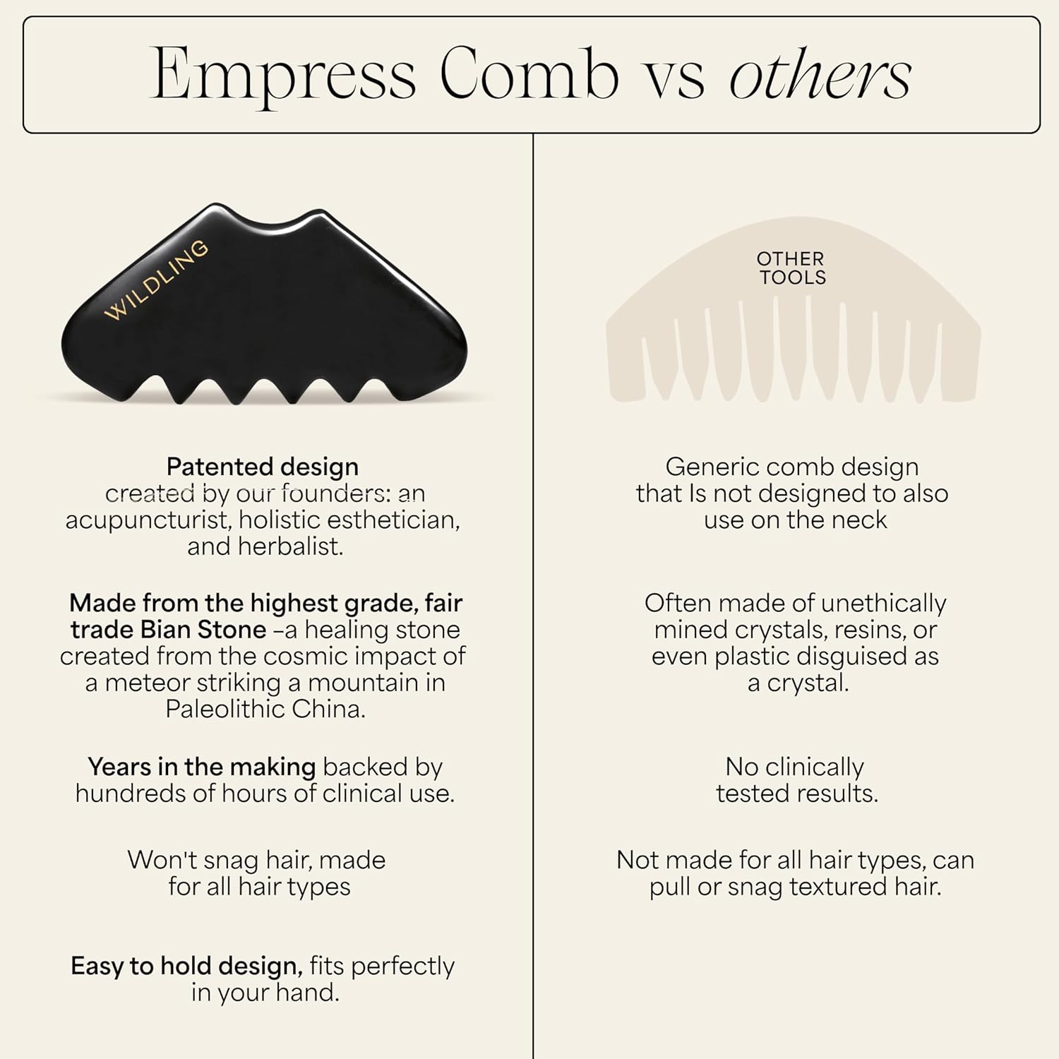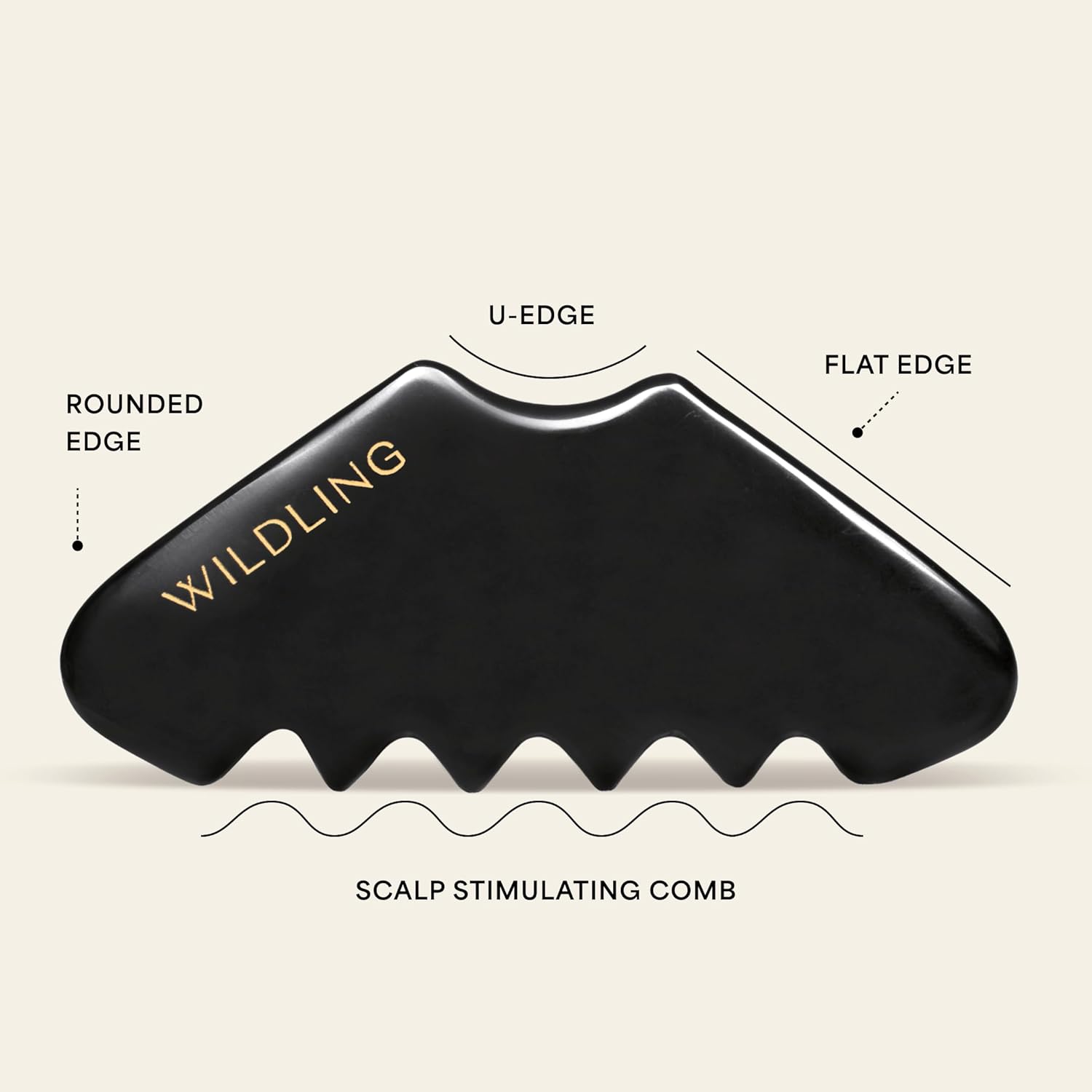 WILDLING Empress Gua Sha Stimulating Scalp Massager Comb I Scalp Scrubber for Hair Growth + Deep Scalp Cleansing I Patented Design Crafted with 100% Authentic Bian Stone