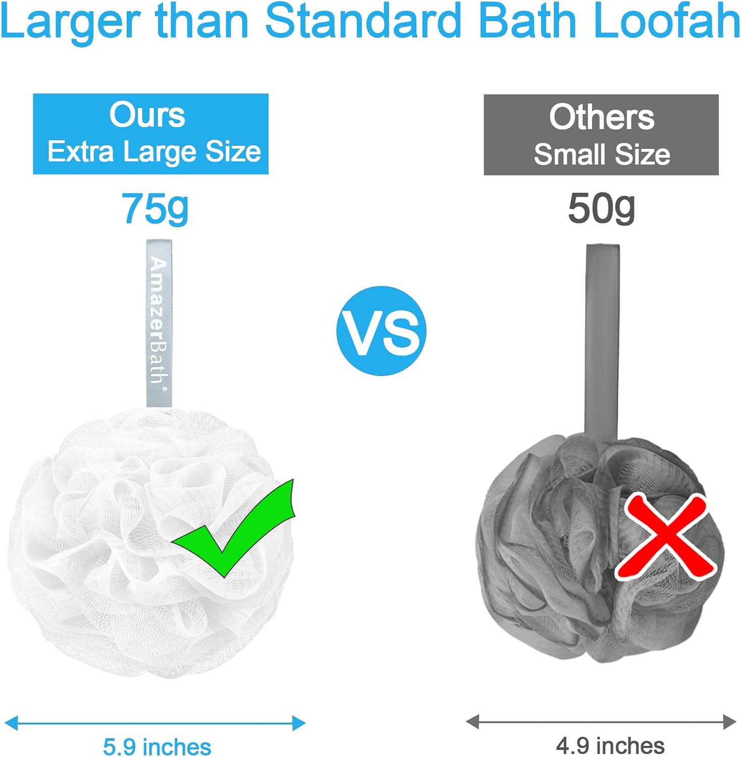 - Nice foaming effect: The AmazerBath loofah sponge has a dense, fluffy mesh that allows you to create a rich and luxurious lather with just a small amount of body wash or soap. (Using AmazerBath loofa can save you 20% of the shower gel)