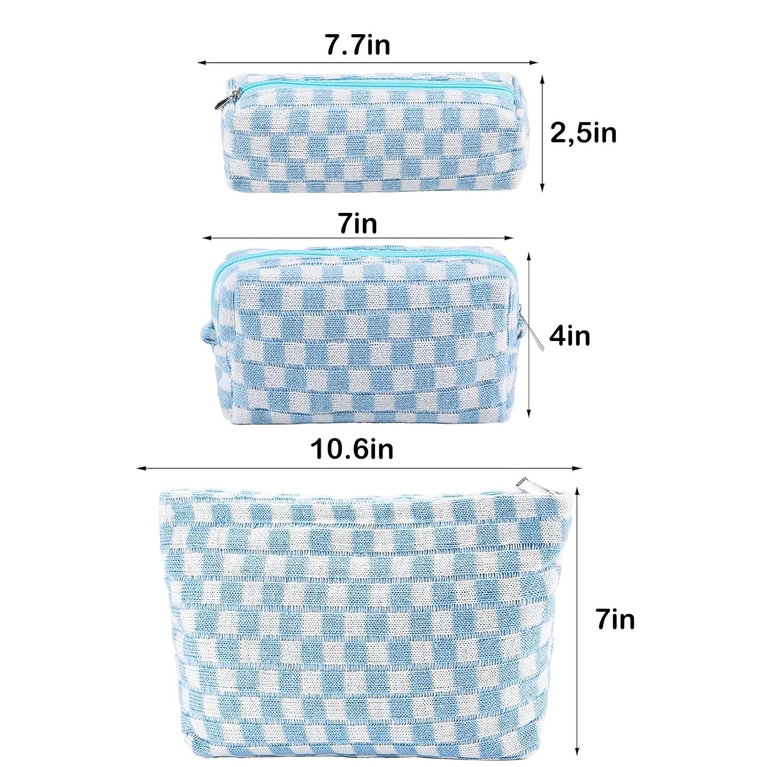 - LARGE CAPACITY AND PREMIUM MATERIAL: The cute makeup bag measure 10.6×7 inches, 7×4 inches and 7.7×2.5 easy to carry. The checkered makeup bag is made of soft knitted fabric, easy to clean. The smaller ones can be used as pencil case or pencil pouch. This makeup travel bag can also hold small items such as makeup, skincare products, lipstick, eye shadow, eyebrow brush, etc. Makeup storage bag for women toiletries