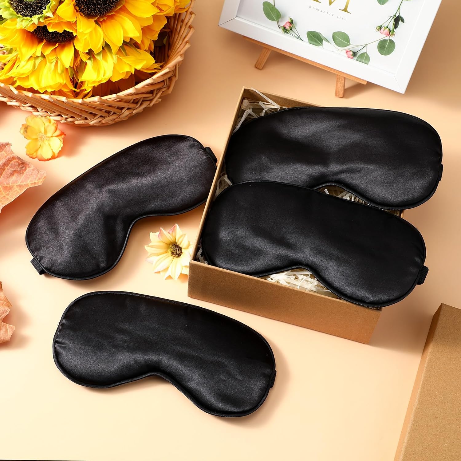 BBTO 4 Pcs Silk Sleep Eye Masks Smooth Soft Satin Eye Covers with Adjustable Strap Blindfold for Sleeping Blocking Out Lights Travel Relaxation (Black)