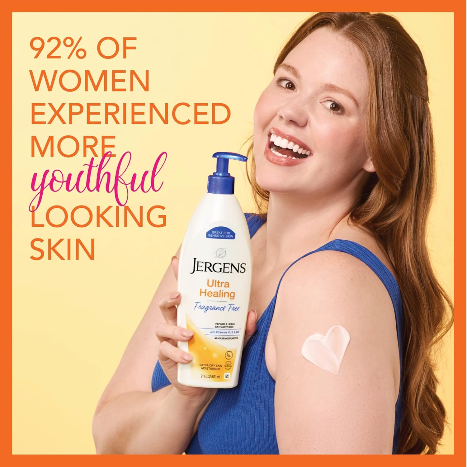 Jergens Ultra Healing Dry Skin Lotion, Hand and Body Moisturizer for Quick Absorption into Extra Dry Skin with Hydralucence Blend, Vitamins C, E and B5, White, 21 oz