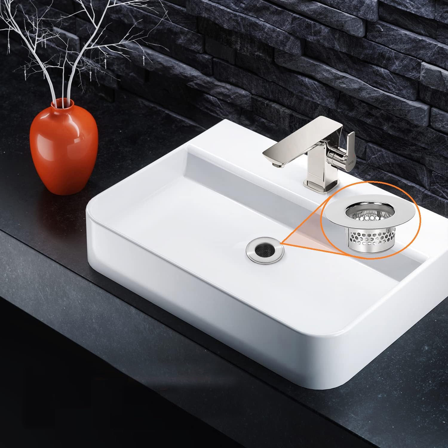 - 【Effective Filtering & Efficient Anti-Clogging】- The shallow drain cover sits flush with basin and meanwhile has just enough wiggle room for water to slip along the sides and down the drain. That make the drain strainer catch all hairs and other debris while does not clog or block the flow of water.