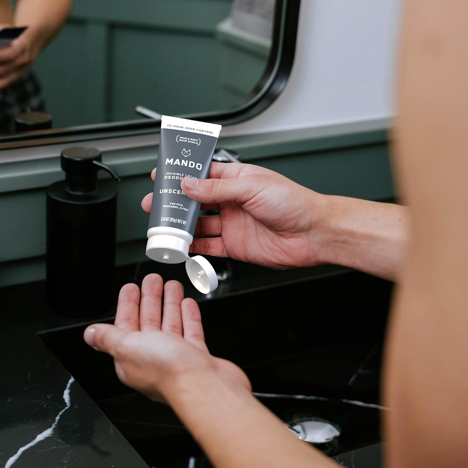 Mando Whole Body Deodorant For Men - Invisible Cream - 72 Hour Odor Control - Aluminum Free, Baking Soda Free, Skin Safe - 3 ounce (Pack of 2) - Unscented