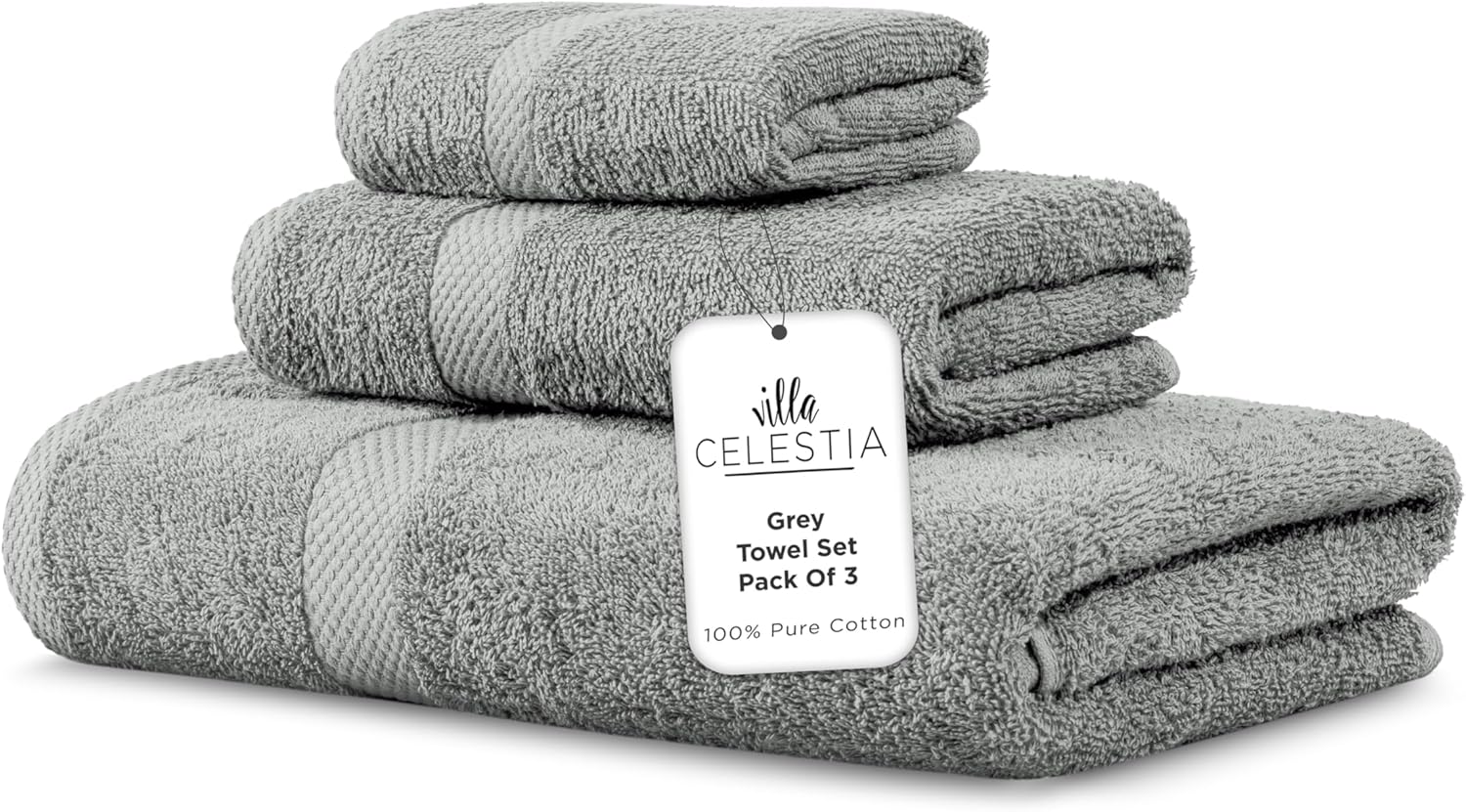 - VILLA CELESTIA LUXURIOUS TOWEL SET (PACK OF 3): Uplift your mood and bathing experience with the super soft and luxurious touch of our Villa Celestia Bath Towels Set. Bundled in a 3 pack design, our towel sets for bathroom consists of 1 Bath Towels (27β X 54β), 1 Hand Towels (16β X 28β), and 1 Washcloths (12β X 12β), giving you the complete package of comfort, indulgence, and delight.
