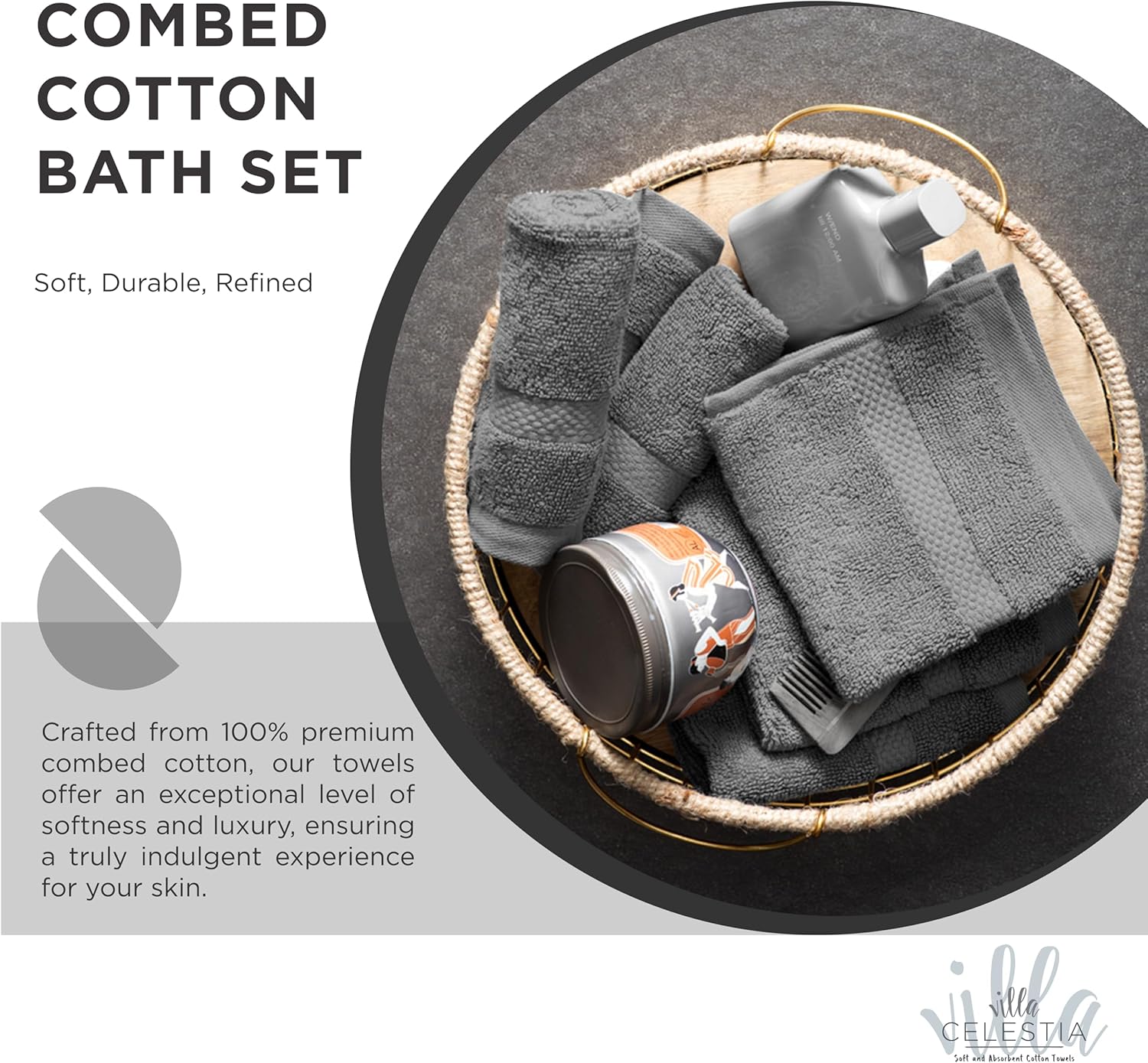 100% Combed Cotton Bathroom Towel Set of 3- 1 Bath Towel, 1 Hand Towel, 1 Wash Cloth, Sustainable, Soft, Highly Absorbent 3 Piece Cotton Bath Towel Set Ideal for Hotels, Spa, Bathroom, Dorm, Grey