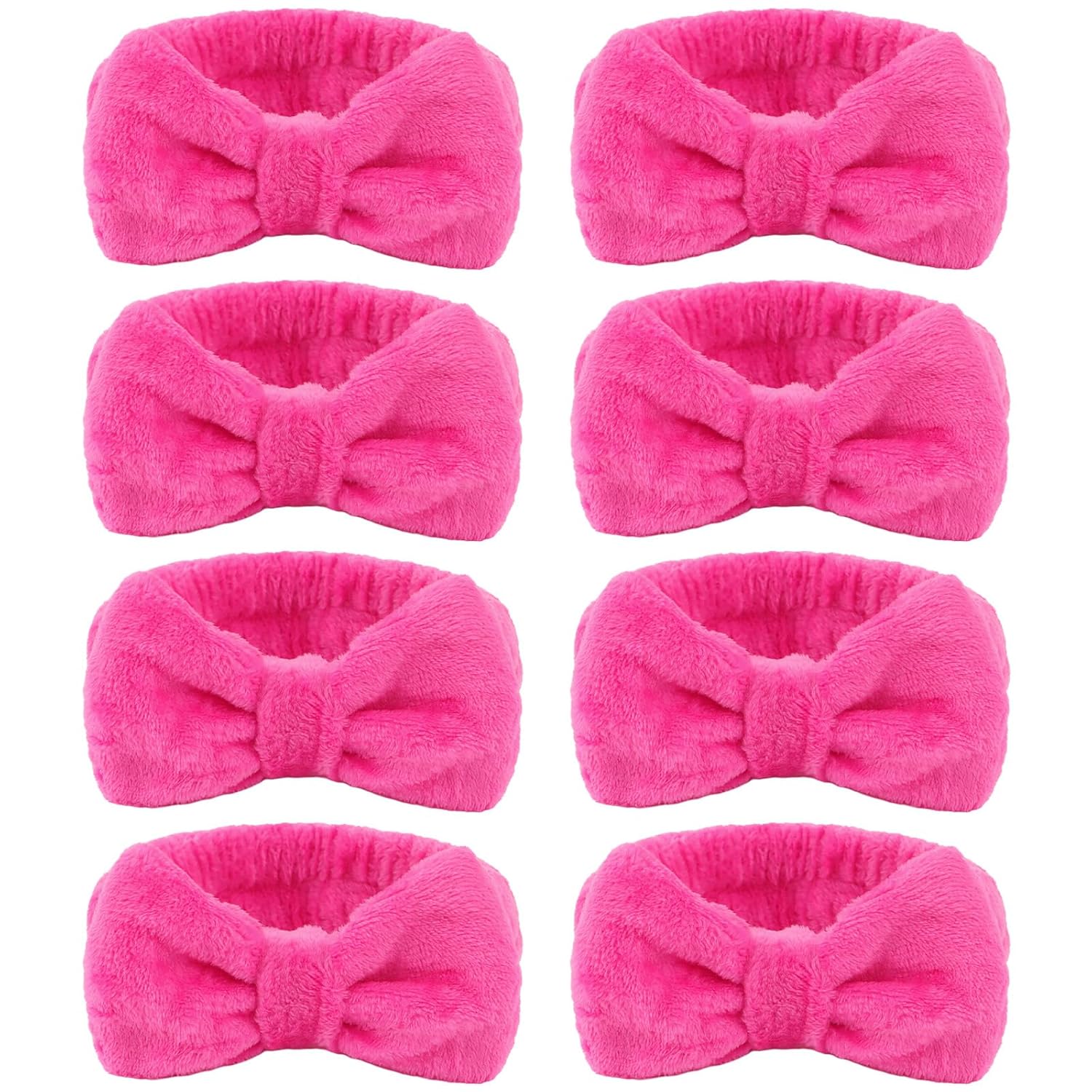 CIEHER 8 Pcs Spa Headbands for Women, Teen Girls - Bachelorette Party Favors, Birthday Gifts, Hot Pink Makeup and Face Wash Headbands