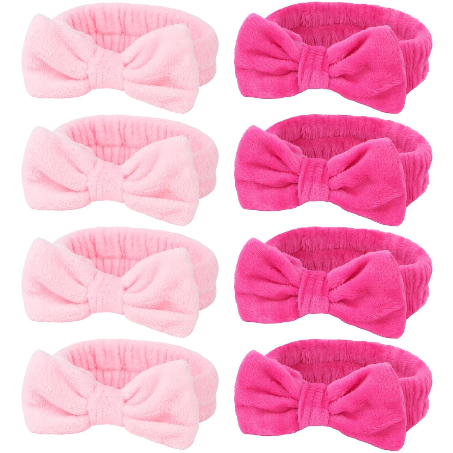 - Durable: These skin care headbands bulk including 8 pcs pink & hot pink spa head bands. Cute bow design, you can sharing these headband with your sisters, family and friends. pink spa headbands are the necessary spa accessories for spa party.