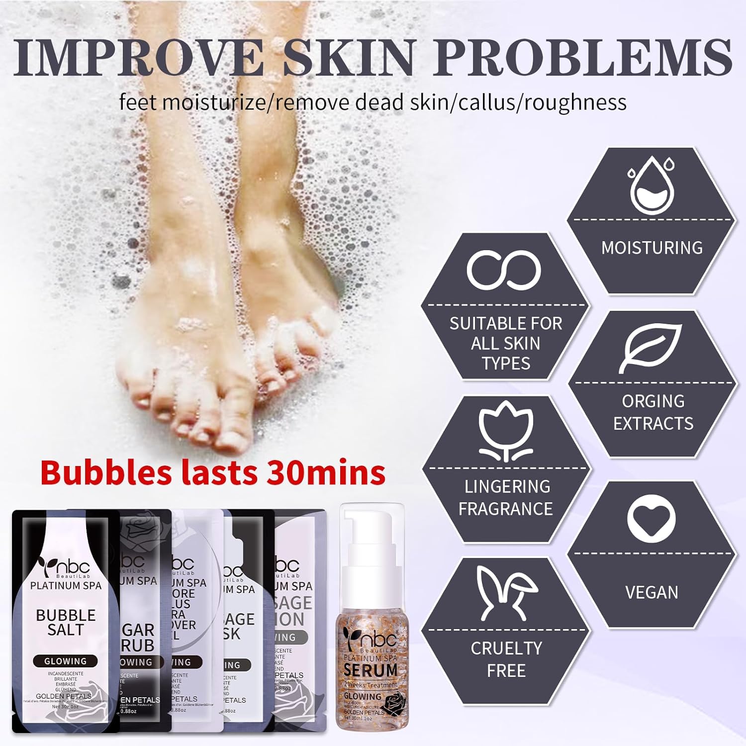 - đ[Individually Packaged Foot Spa] This foot soak is individually packaged unlike other products that are only available in jars and containers. This guarantees a clean and hygienic source to your foot care. You can find 6 products per pedicure kit making it easy to travel with, allowing you to enjoy the spa experience anytime, anywhere.