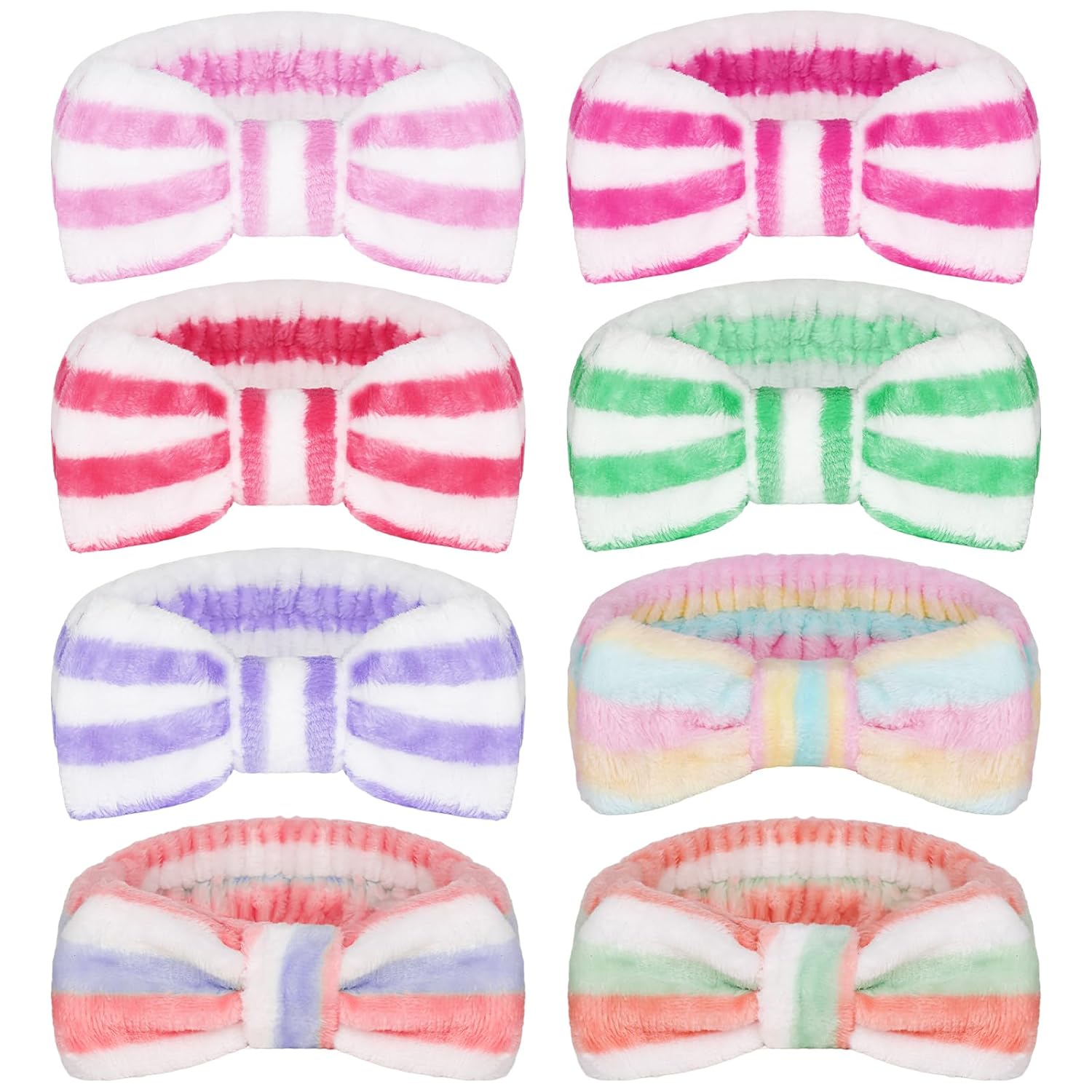 - Durable: These skin care headbands bulk including 8 pcs different color striped spa head bands. Cute bow design, you can sharing these headband with your sisters, family and friends. these bow spa headbands are the necessary spa accessories for spa party.