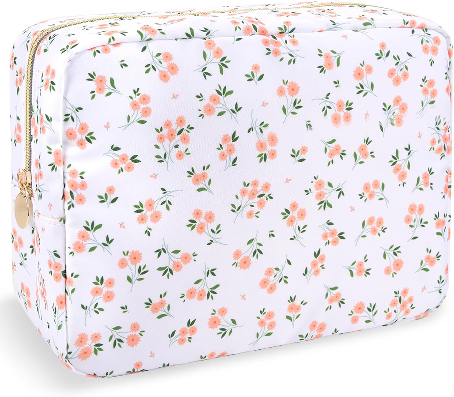 - ❤【Multiple Sizes & Colors】Large, Small, Mini, or Slim, we have it all! Cosmetic bags are available in many colors: Blue-Daisy, Green-Daisy, White-Flower, Pink-Flower and other colors for you to choose. Nylon makeup bag for purse can be used for travel, outdoors and organization, it can be used as a purse bag, travel pouch, clutch, makeup organizer and more.