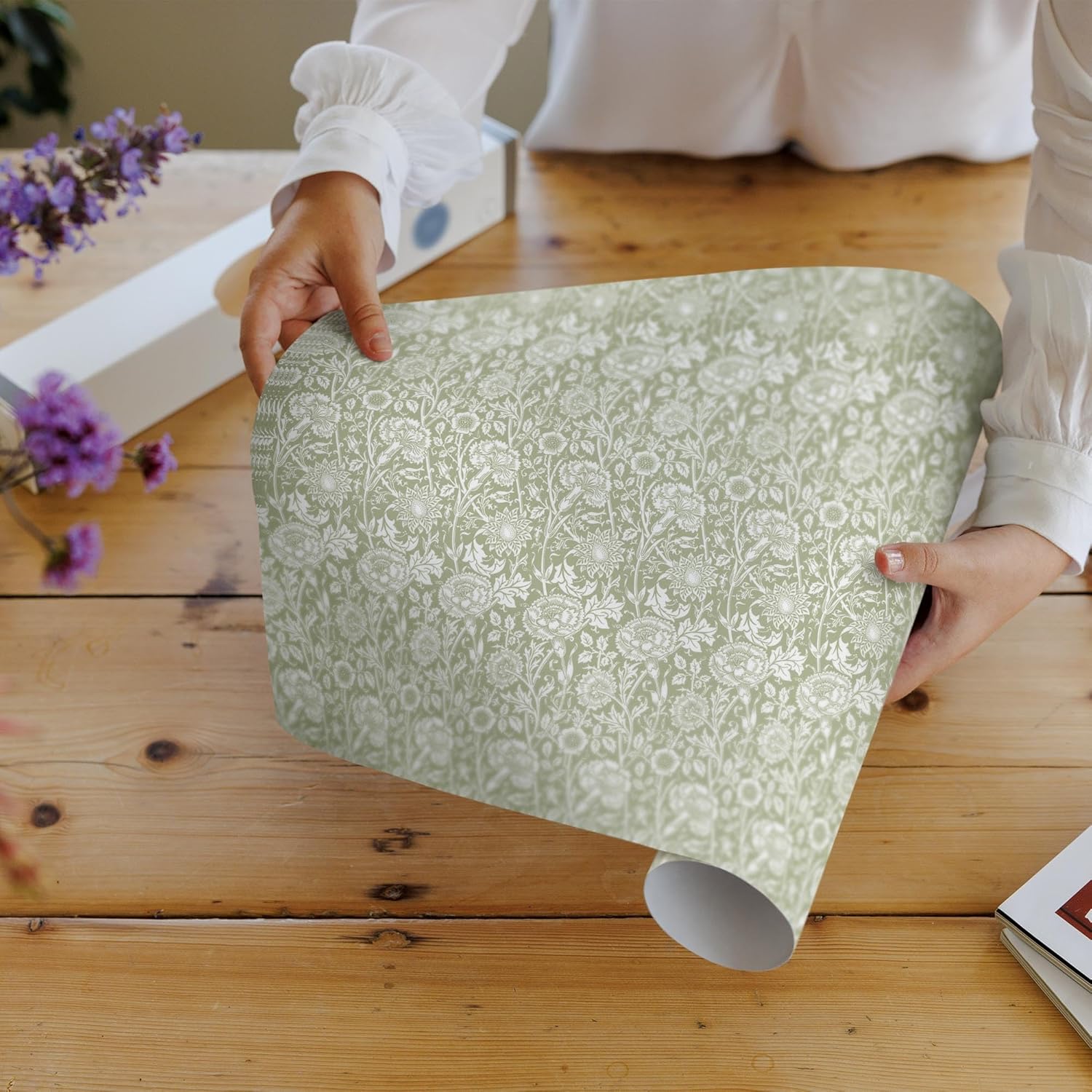 Fragrant Fresh Linen Scented Drawer Liners in a SAGE Green | William Morris Design| Pack of 5 Sheets (Folded) | Contains Essential Oils | Made in The UK