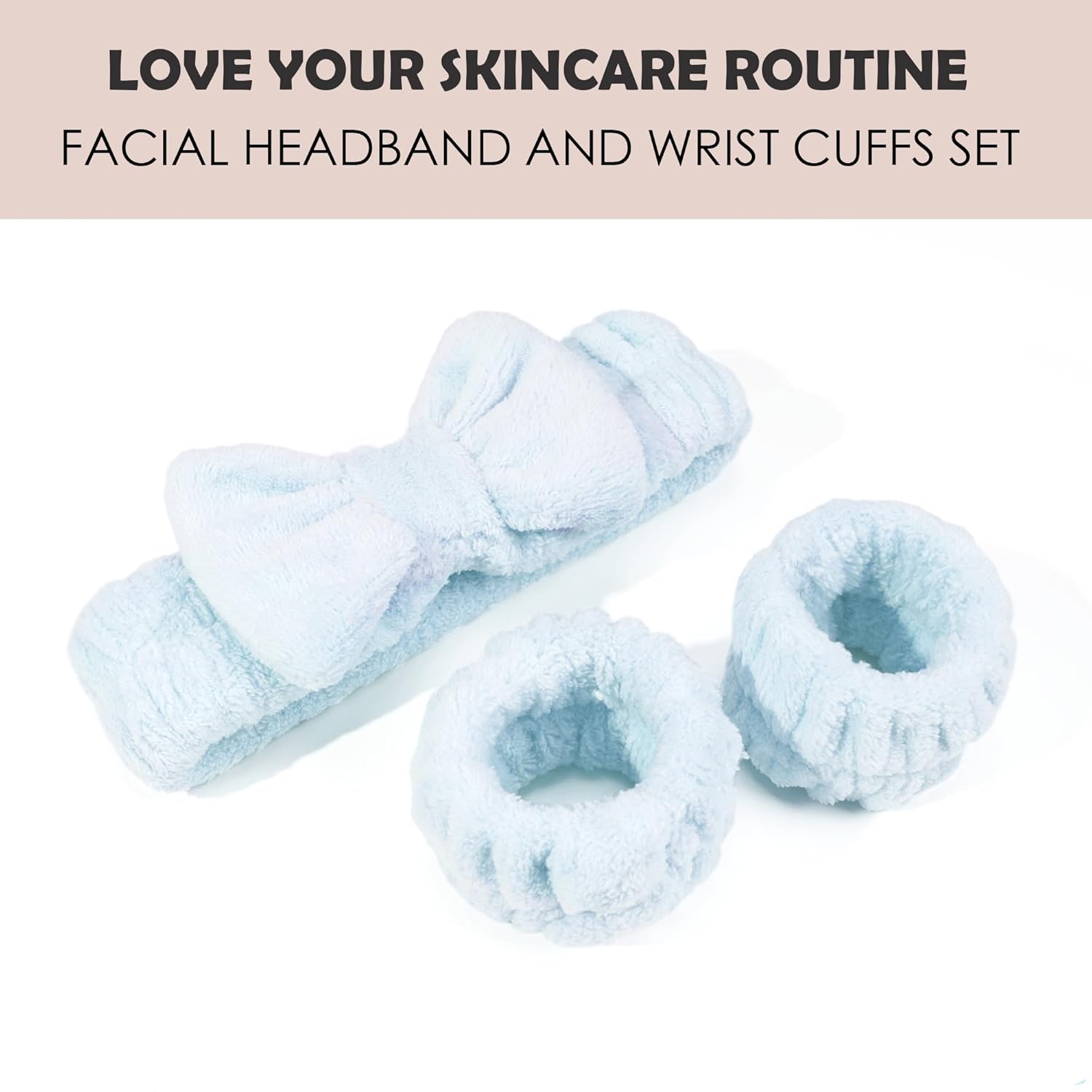 - Spa Headband and Wristband - The set contains 1pairs Face Washing Wristbands and 1 headband ,Unlike other face wash headband styles, this face washing headband includes 1 pairs matching scrunchies that prevents water from running down your arms and can also be used to tie your hair back