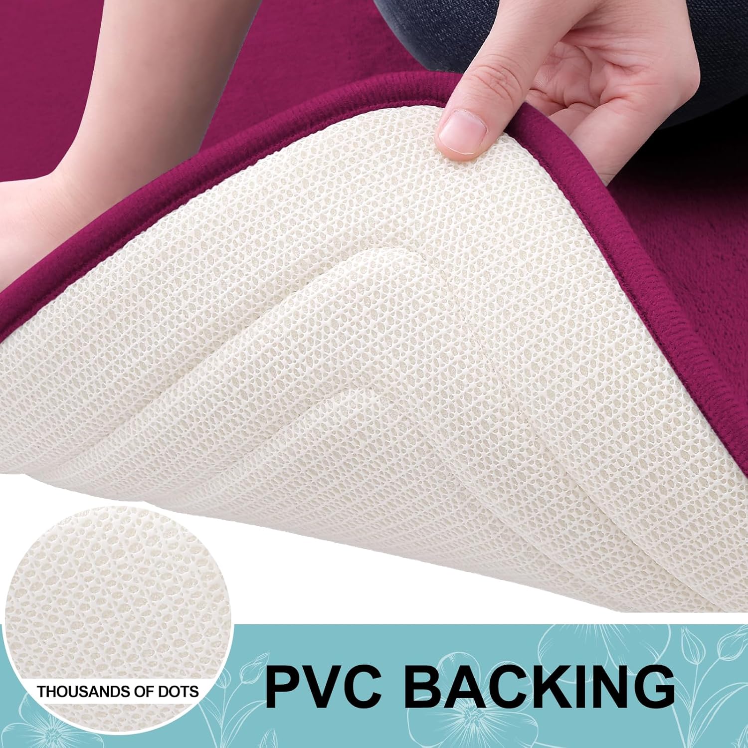 - [STABLE FOOTING] Our bathroom mat is equipped with a robust and enduring PVC backing, preventing shifting and skidding. Unlike mats with rubber backing that may wear off after washing, our bath mat ensures lasting durability. For a secure footing, keep the floor beneath the rug dry and avoid placing it on wet surfaces.