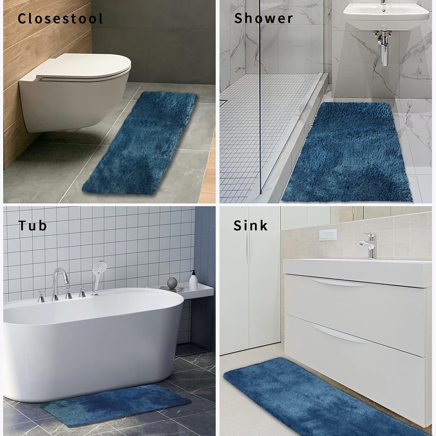FIFU Bathroom Runner Rug 24" W x 60" L, Bath Mats for Bathroom, Bedroom & Kitchen, Non-Slip Rubber Latex Backing, Comfort & Soft Shower Bathmat & Carpet for Sink, Home & Hallways, Peacock Blue