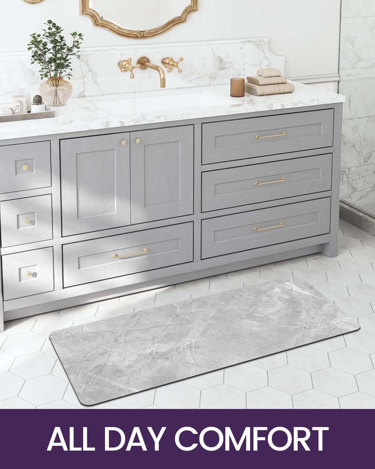 DEXI Bath Mat 17x32, Non Slip Quick Dry Rugs, Super Absorbent Ultra Thin Marble Bathmat, Washable Rubber Mats for Shower Floor, in Front of Bathtub, Sink, Bathroom Accessories Decor, Light Grey