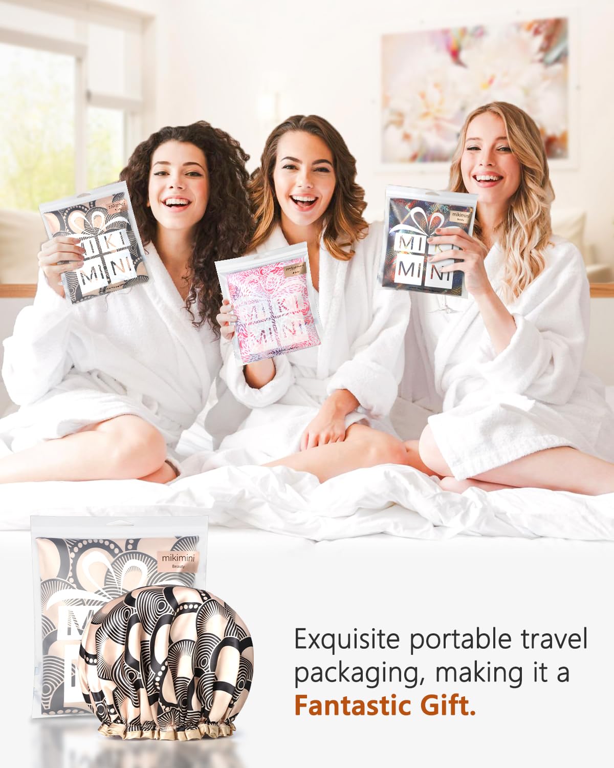 mikimini Medium Shower cap for Women and Girls,Champagne Shower Caps with Lace, Pack of 2,Double Layer Waterproof, Reusable, Washable, High-quality