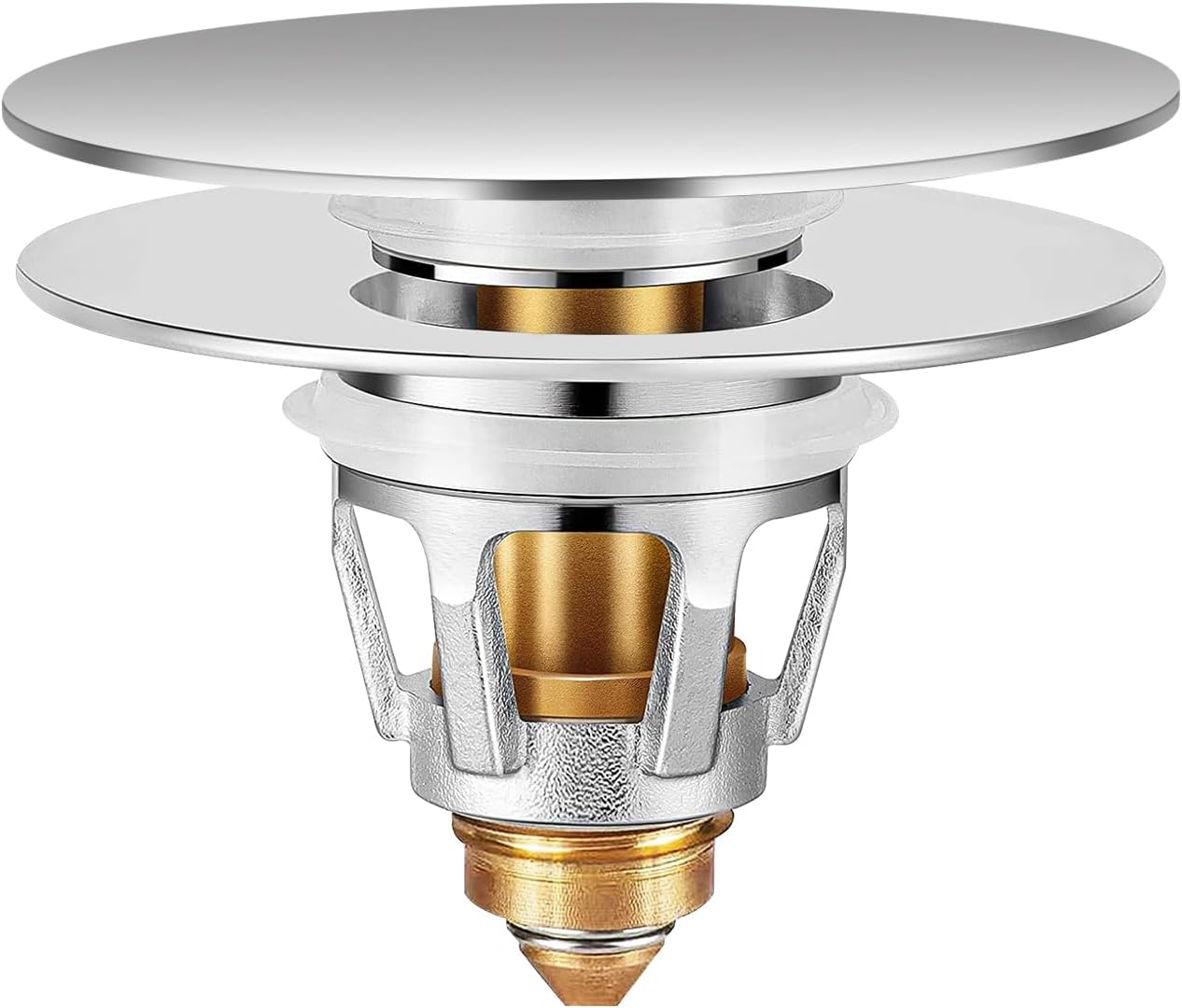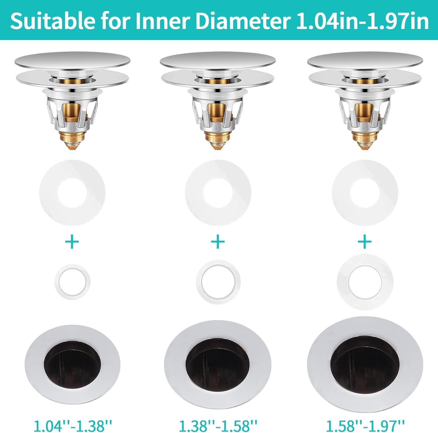 - [ Universal Size ] This bathroom pop-up filter basket drainer is a universal edition stainless steel product with bullet core, can be used for the different types of basin drain. The inner diameter of sink stopper strainer is 1.04ââ. Suitable for drain holes with an inner diameter of 1.04-1.97 inch.