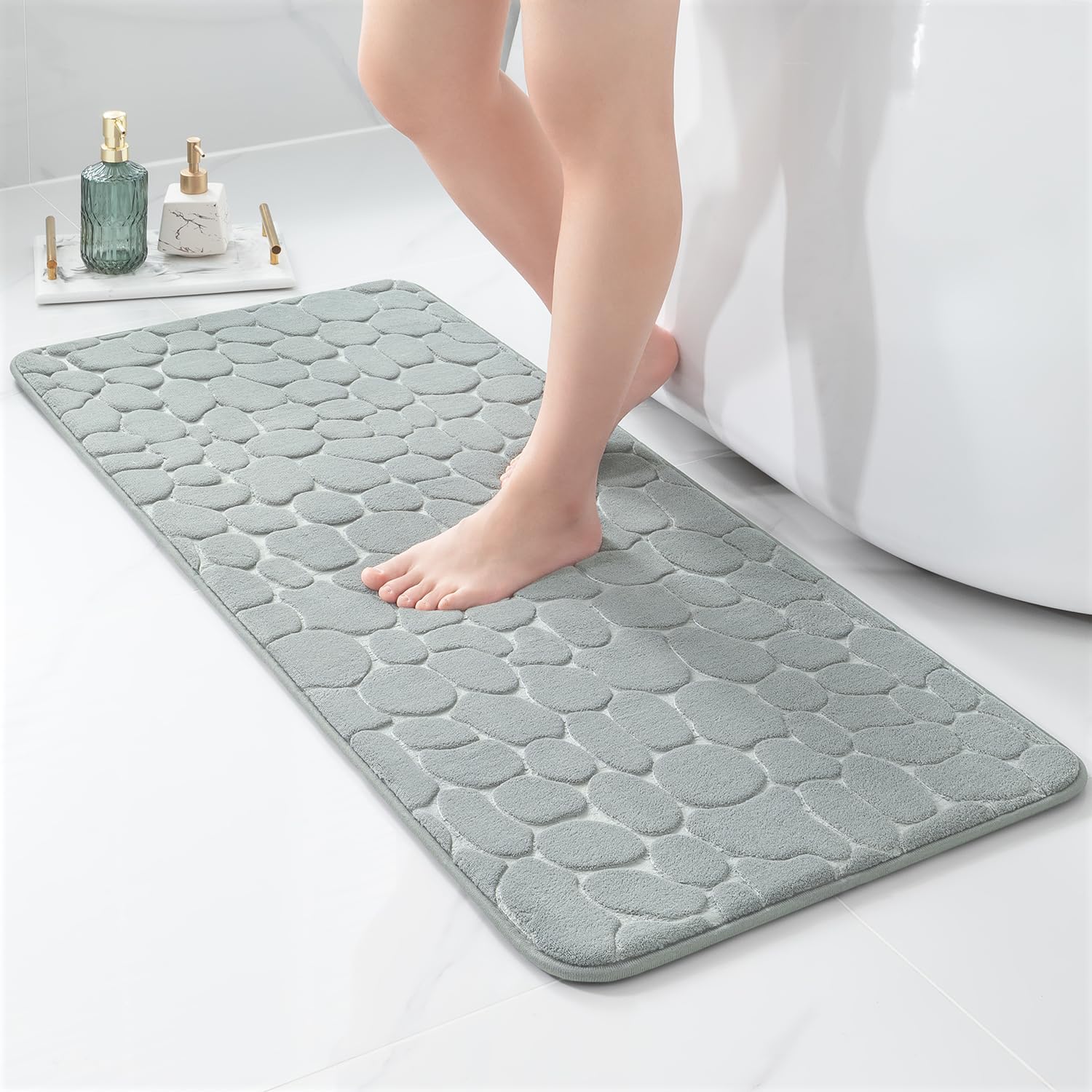 YIHOUSE Memory Foam Runner Rug, Cobblestone Bathroom Runner Rugs Super Water Absorbent Bath Mats for Bathroom Machine Washable Bath Rugs Runner for Hallway Bedroom Laundry Room(20 x 47,Light Gray)