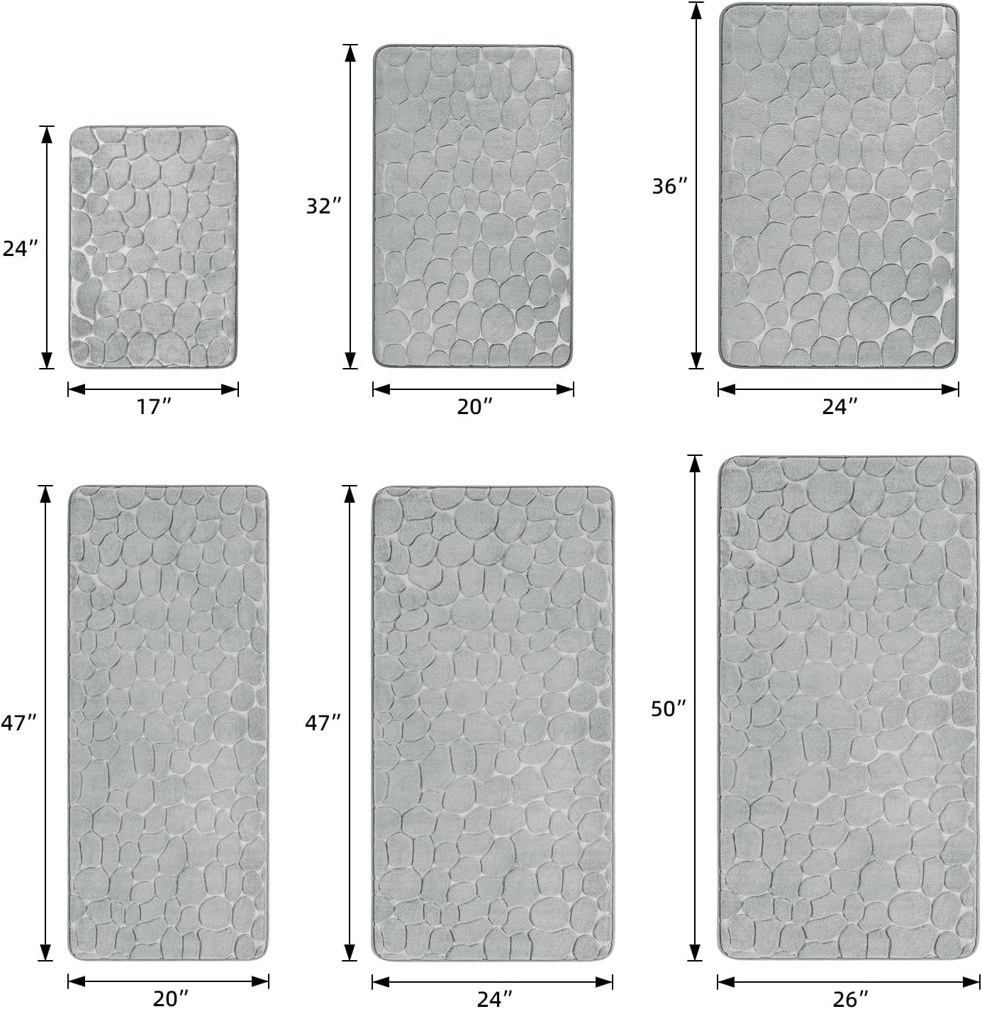 YIHOUSE Memory Foam Runner Rug, Cobblestone Bathroom Runner Rugs Super Water Absorbent Bath Mats for Bathroom Machine Washable Bath Rugs Runner for Hallway Bedroom Laundry Room(26 x 50,Light Gray)
