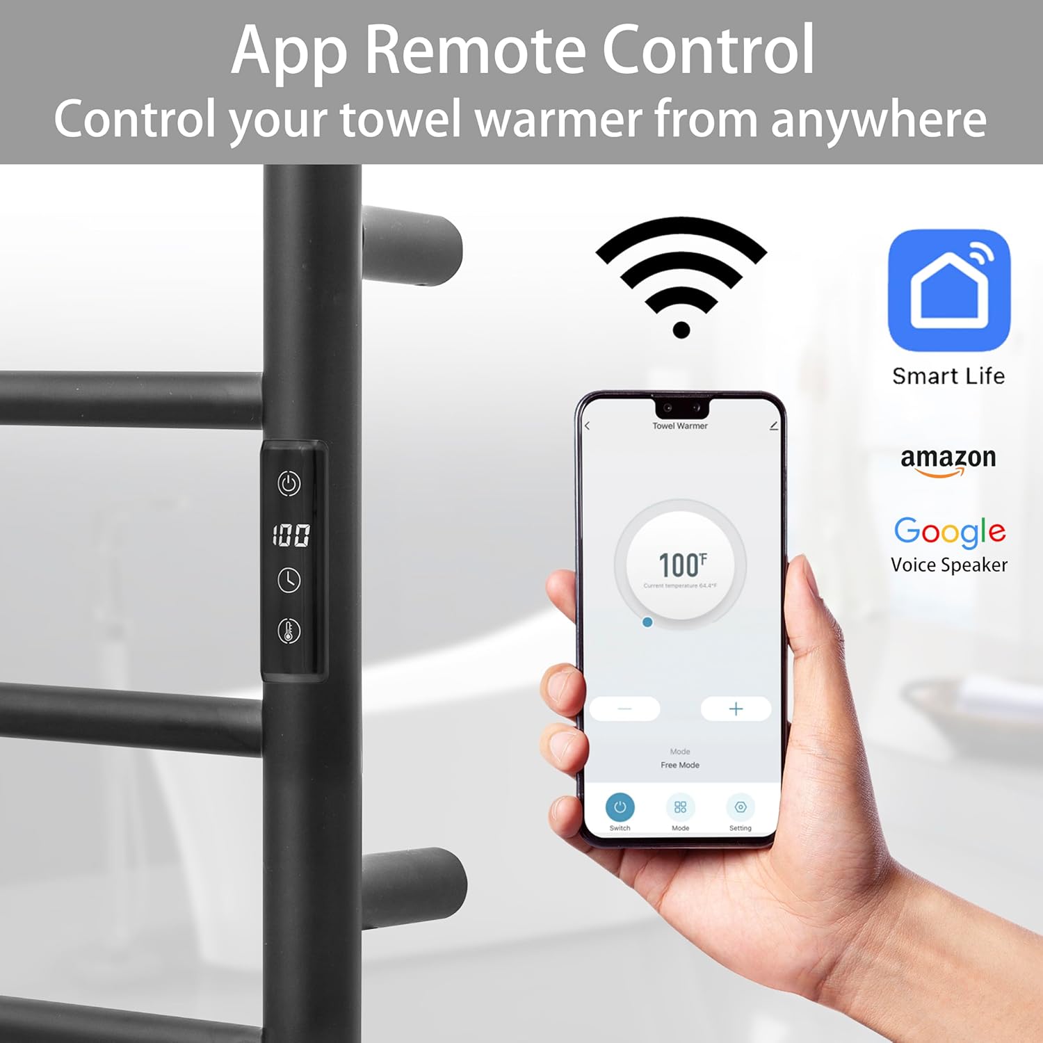 - [APP CONTROL & SMART SCHEDULING]: Turn the towel warmer on or off from anywhere in the world with your smartphone using the SmartLife app. Set the towel warmer to automatically turn on/off as needed.