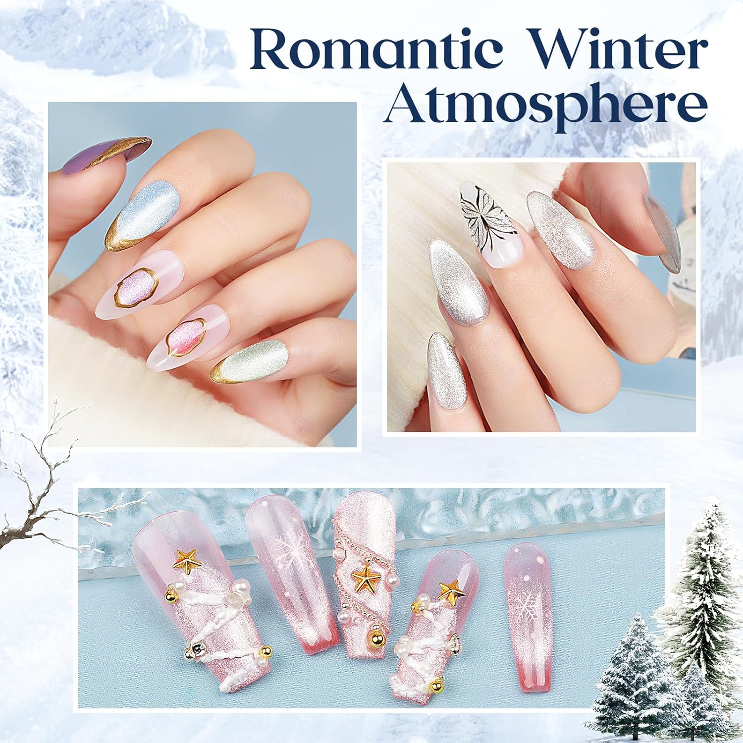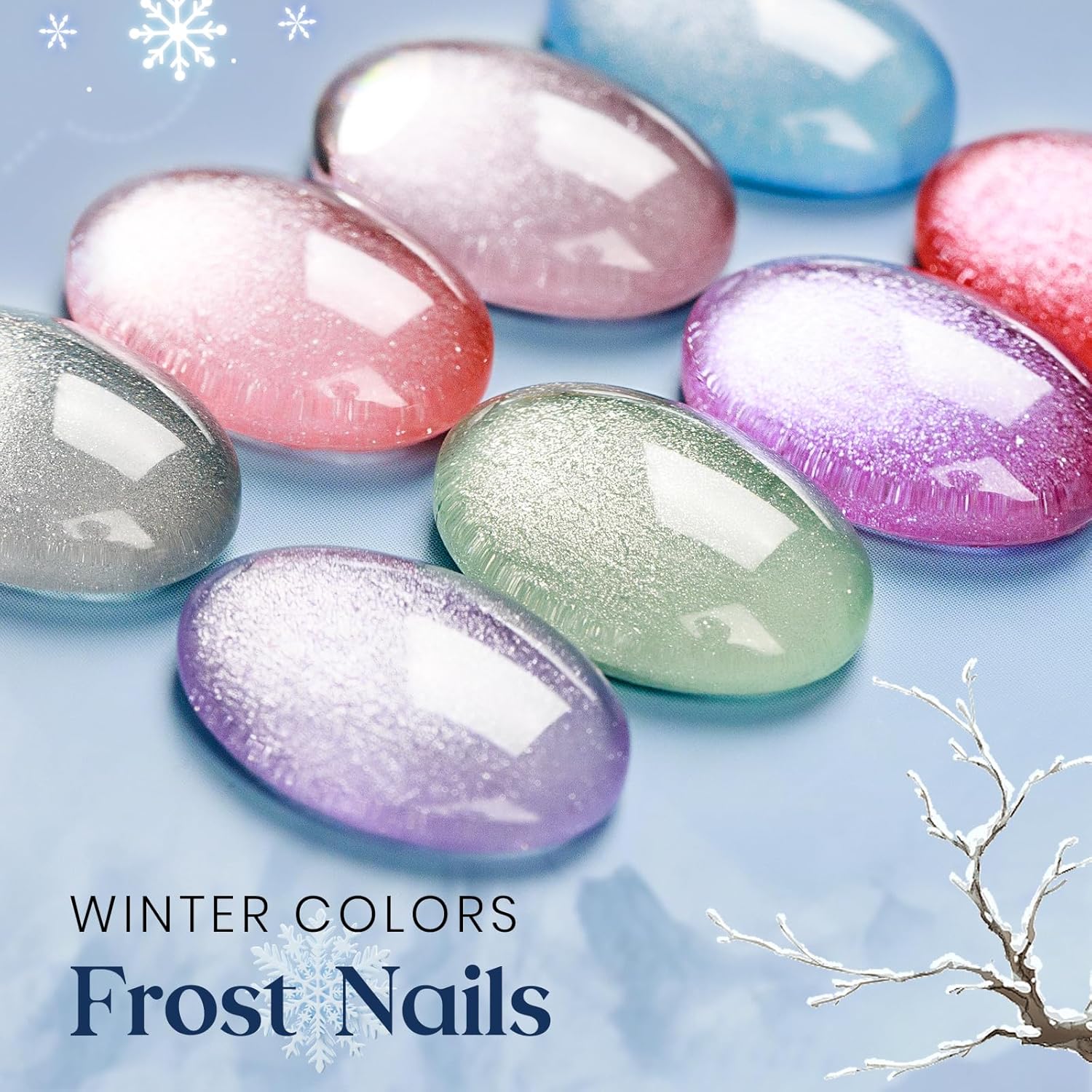 - Colors of Winter Atmosphere & Holographic Glitter Effect: Well-selected 8 colors winter colors series with holographic glitter cat eye effect, which bring you a unique nail beauty experience. Feel the winter atmosphere with your fingertips. It is also a ideal gift choice for families and friends on festivals such as Mother's Day, Valentine's Day, Christmas and so on.