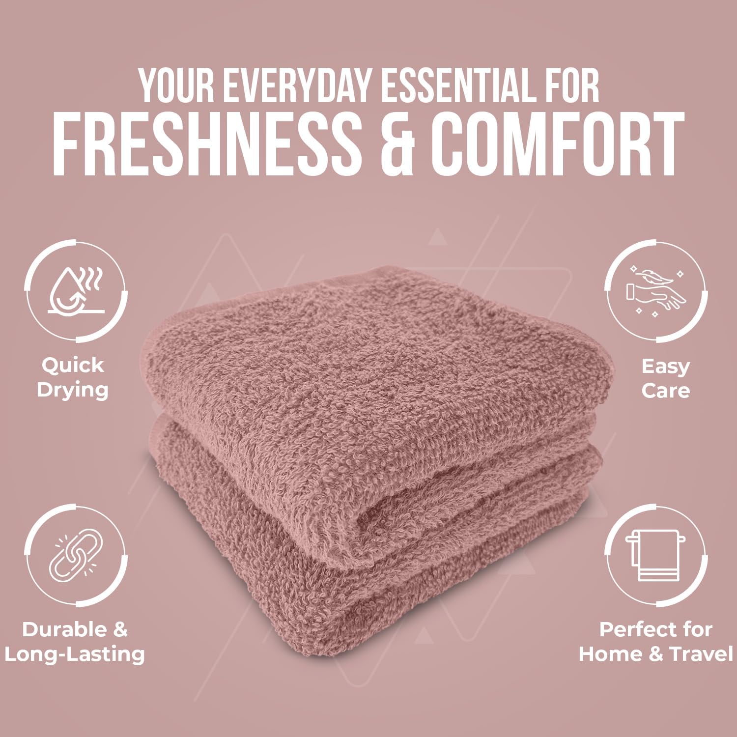 DAN RIVER 100% Cotton Wash Cloths 12 Pack [12x12] Soft & Absorbent wash Cloths for Bathroom, Gym, Hotels & Spa Perfect for Everyday Use Fingertip Towels, Dusty Pink