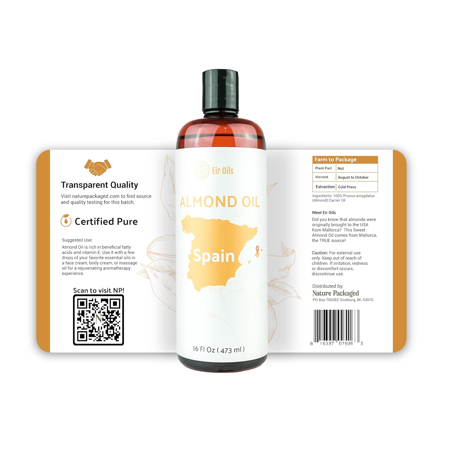 Sweet Almond Oil - for Skin and Hair - Carrier Oil for Essential Oils Mixing - From EIR Oils' Farm in Mallorca, Spain - 1 Gallon