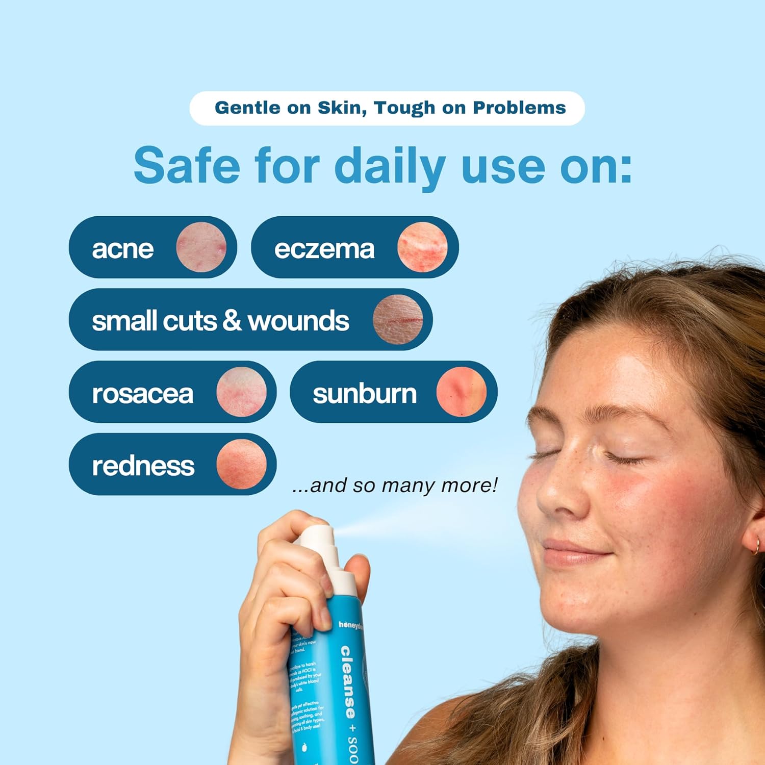- Daily SOS Skincare Solution: A multi-tasking spray that calms, cleanses, and refreshes your skin anytime, anywhere. Perfect for soothing breakouts, redness, or irritation — just spray and let your skin breathe again.