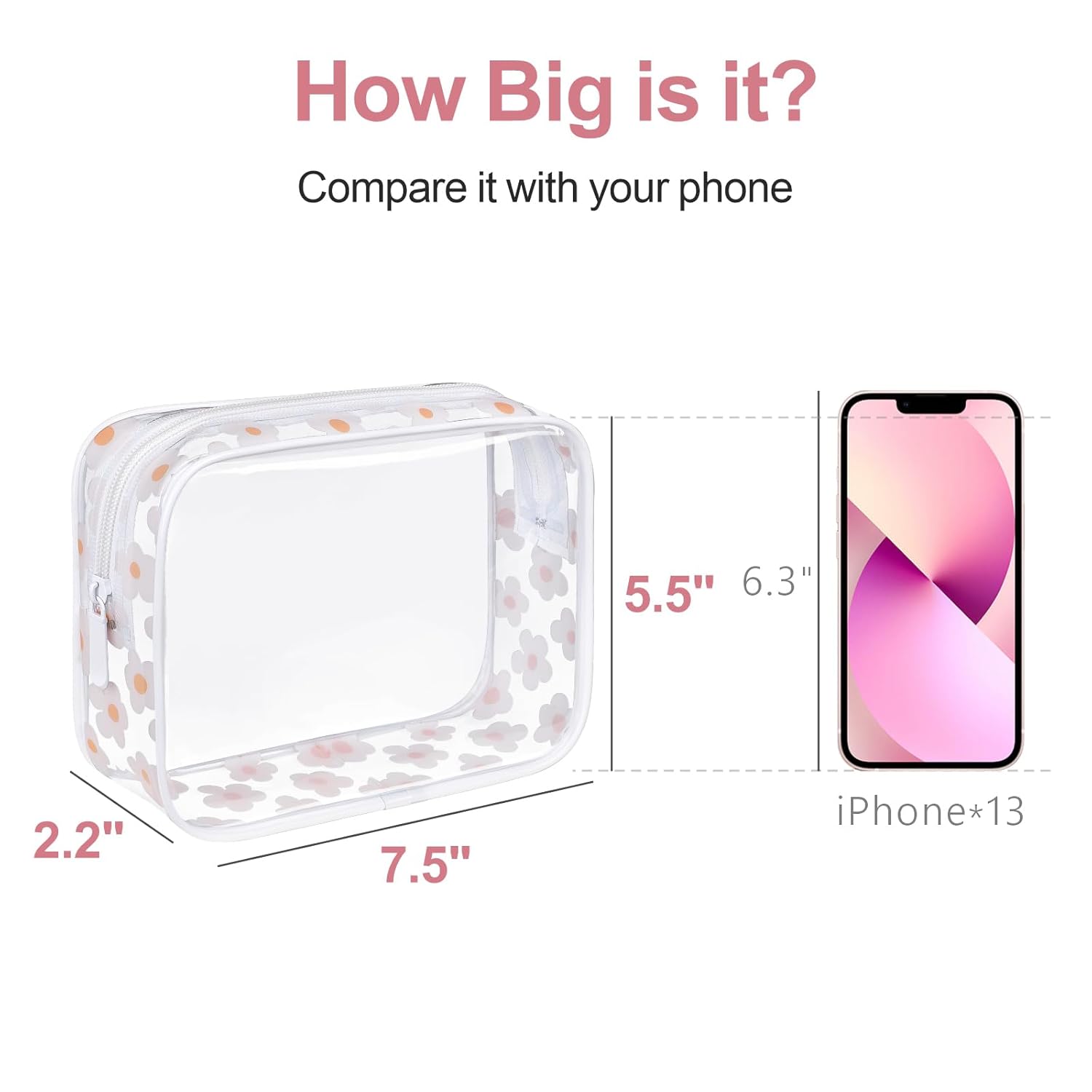 PACKISM TSA Approved Toiletry Bag - White Flower Print Clear Makeup Bag, Suitable for Gifts, with Supporting Frame, Perfect Valentines Day Gifts for Her, Thick No Smell