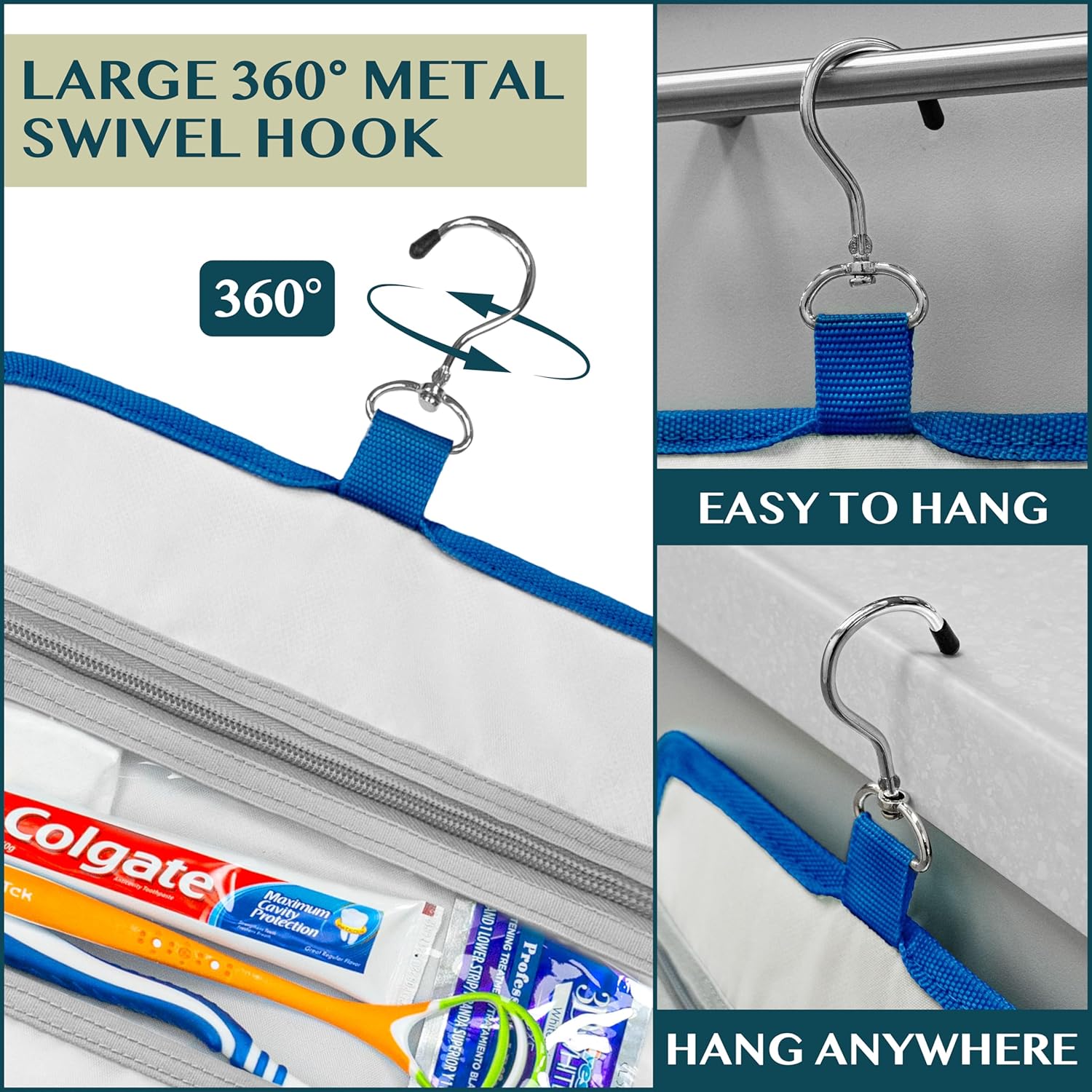 • HANGING COSMETICS TRAVEL BAG ORGANIZER: This toiletry bag for women has a hanging hook and multiple pockets that help you stay organizer during business trip, vacation travel. The hanging hook makes it easy to hang the toiletry bag to bars in the hotel shower bathroom. Unzip your toiletry bag to reveal compartments to organize your shampoo, skincare face hygiene products. This toiletry travel bag is an essential accessory for cruise in Europe, plane, Hawaii Trip, and honeymoon.