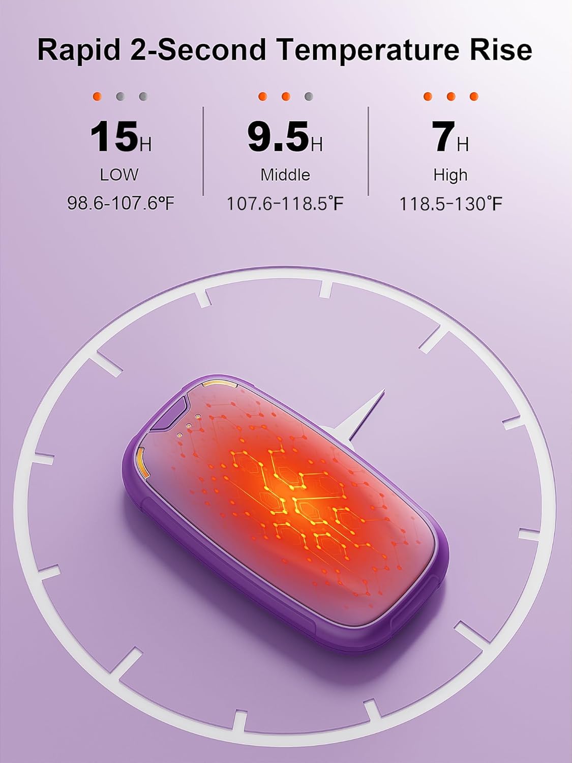 - 【2-in-1 Magnetic Design】This rechargeable hand warmers 2 pack is designed with magnetic attraction, it can be divided into two for independent heating, and portable hand warmer for easy storage. This pocket warmers has a unique shape and feels comfortable to use. Use it as a camping hand warmers and share it with your friends and family.