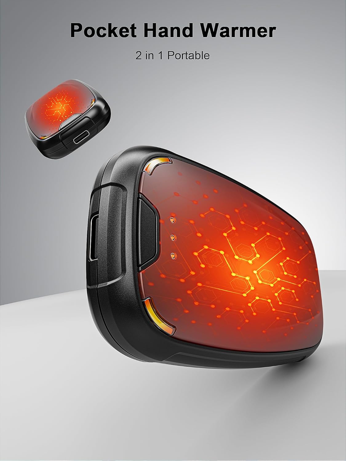 - 【2-in-1 Magnetic Design】This rechargeable hand warmers 2 pack is designed with magnetic attraction, it can be divided into two for independent heating, and portable hand warmer for easy storage. This pocket warmers has a unique shape and feels comfortable to use. Use it as a camping hand warmers and share it with your friends and family.