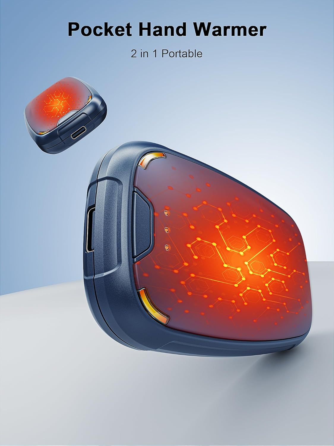 - 【2-in-1 Magnetic Design】This rechargeable hand warmers 2 pack is designed with magnetic attraction, it can be divided into two for independent heating, and portable hand warmer for easy storage. This pocket warmers has a unique shape and feels comfortable to use. Use it as a camping hand warmers and share it with your friends and family.