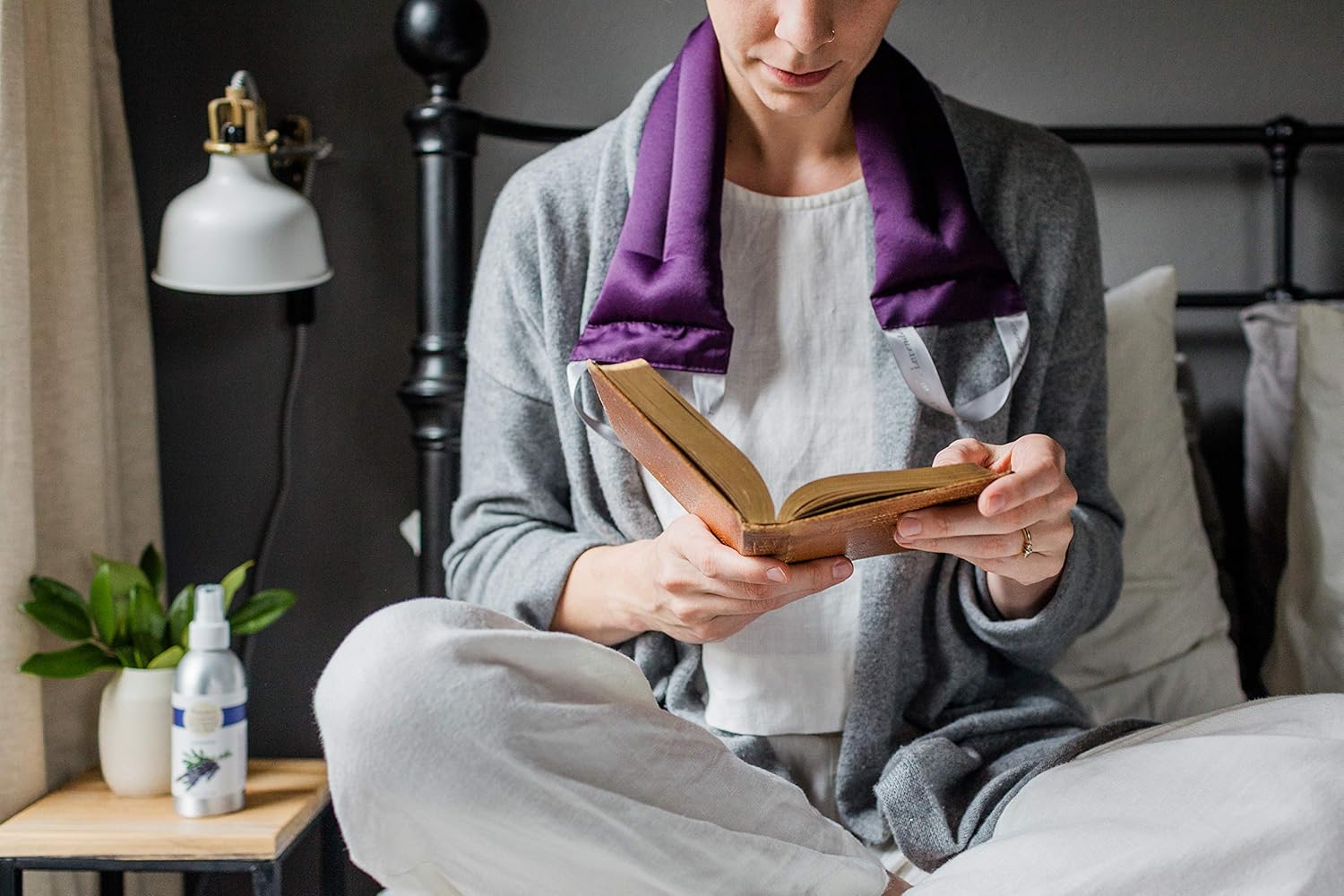 Victoria's Lavender Luxury Microwavable Aromatherapy Neck Wrap Neck Pain Comfort with Genuine Lavender & Flax Seed, Made in USA Linen Spray (2.5 oz) & Lavender Essential Oil - Gift Box Set (Set of 2)