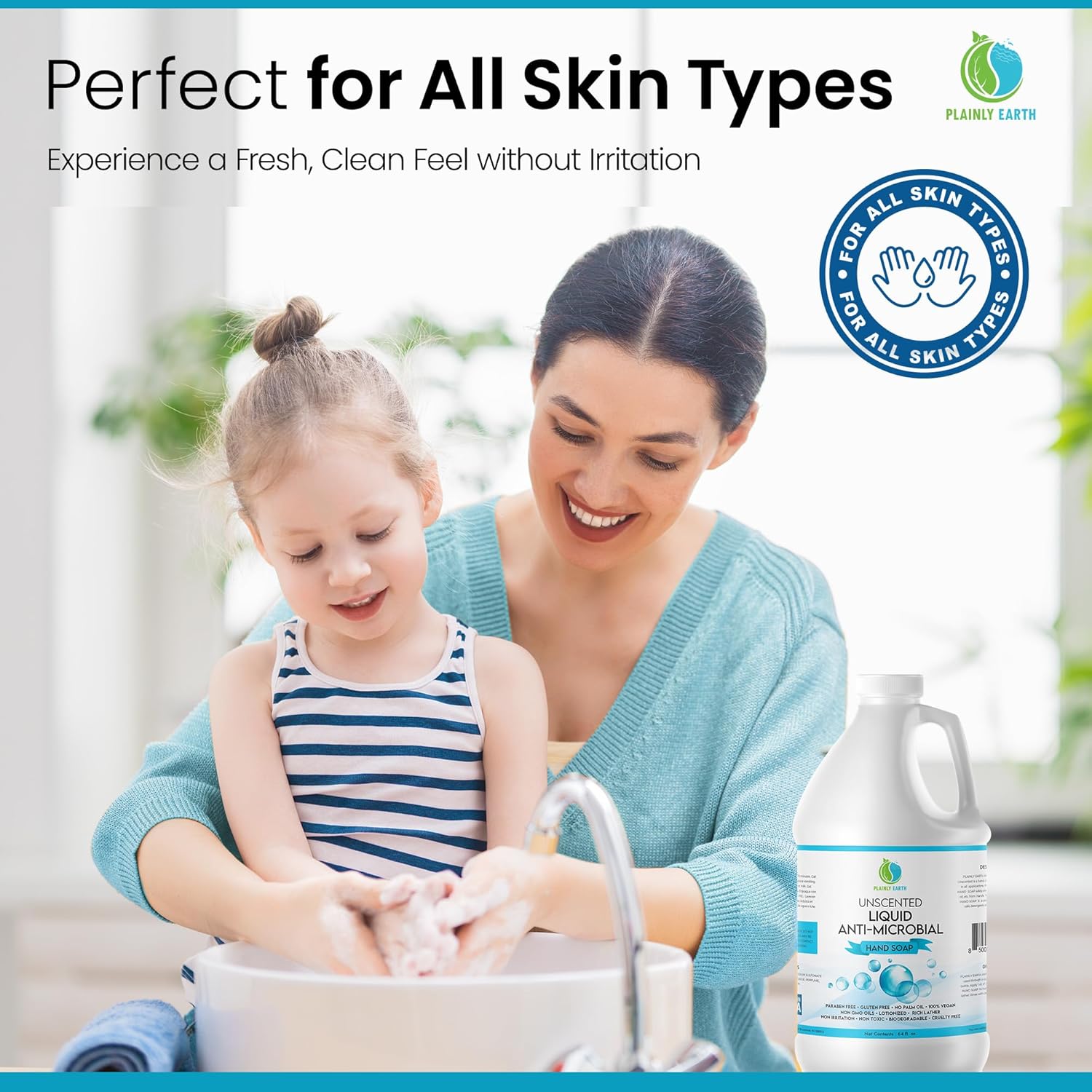 - Gentle on Skin: Made with clean, nourishing ingredients, our unscented anti microbial soap helps keep your hands smooth and soft, even with frequent use. Plainly Earth's gentle formula provides comprehensive defense while caring for your skin, making it an ideal choice for everyday hygiene.