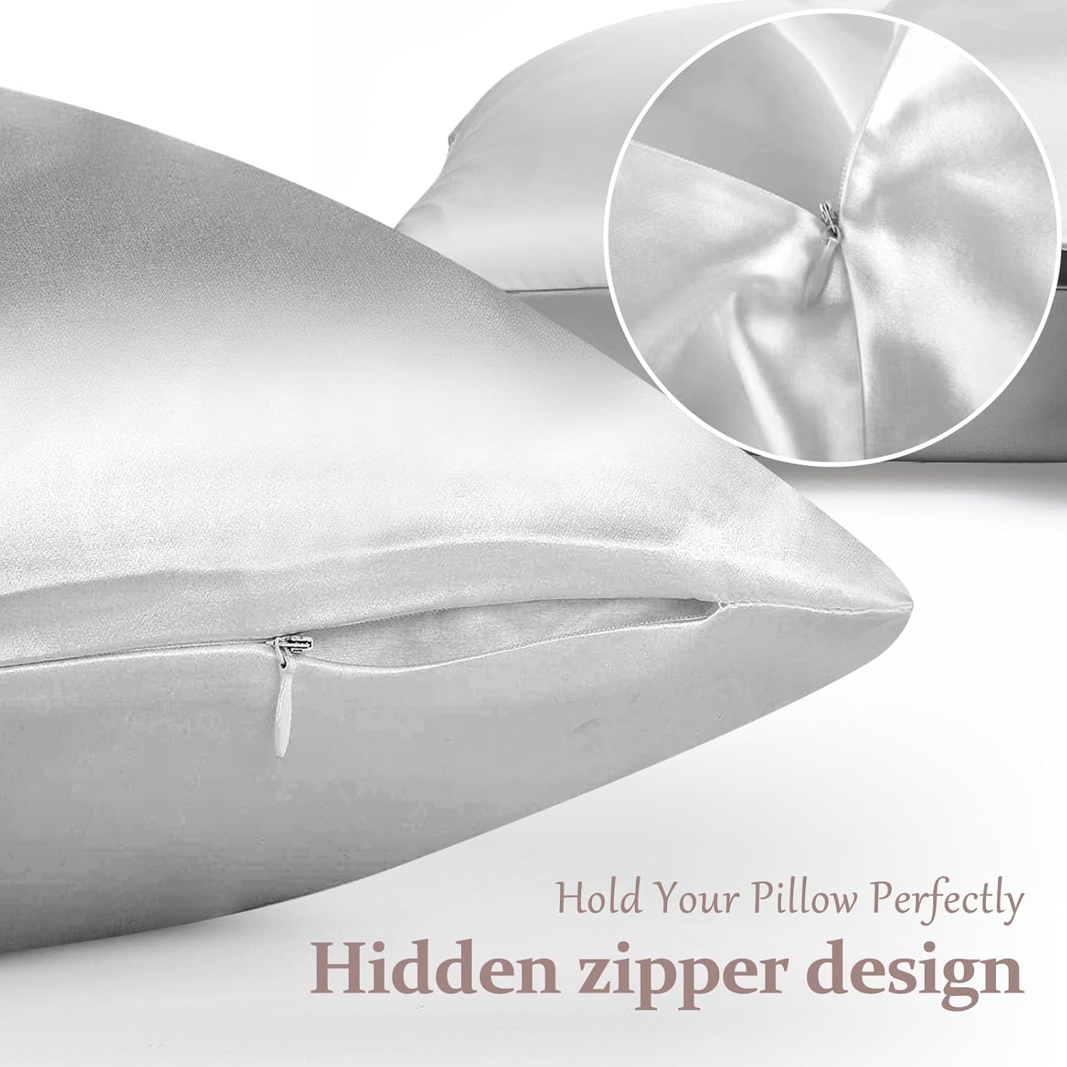- ❤HIGH QUALITY Silk: Both sides of Kinself silk pillowcase is constructed from 100% 19 momme, Superior plain color, not easy to fade after washing. Exquisite craftsmanship of the neat stitches. Hidden zipper closure design makes the silk pillowcase hold your pillow perfectly overnight without moving around, and allows you easy to fit the pillow into the silk pillowcase.