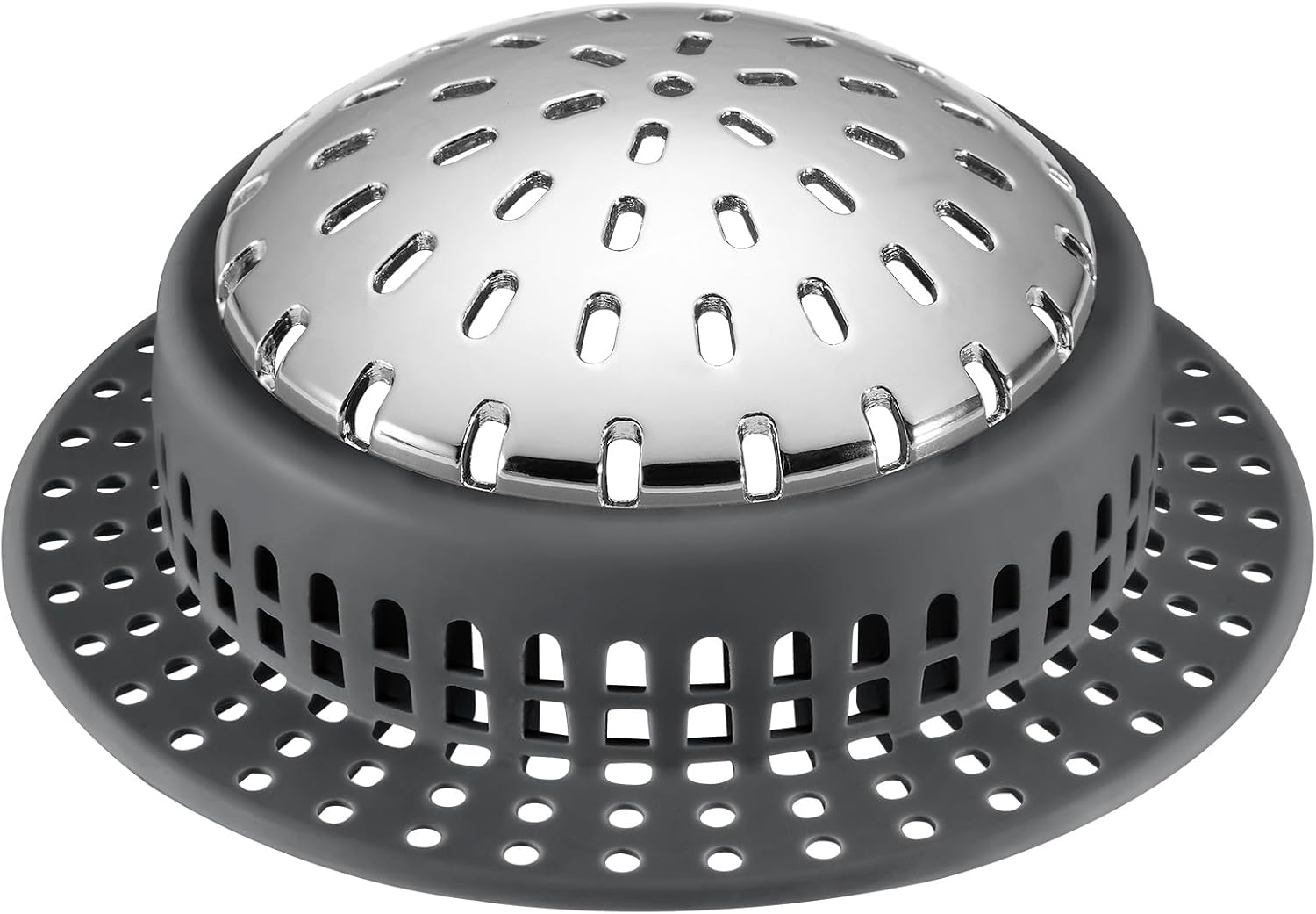 - Upgraded Drain Hair Catcher-Made of rustproof zinc alloy material, which is not easy to rust. The edge of drain catcher is surrounded by non-slip silicone ring, which can catches all the hair and the water still drains out at a good speed!