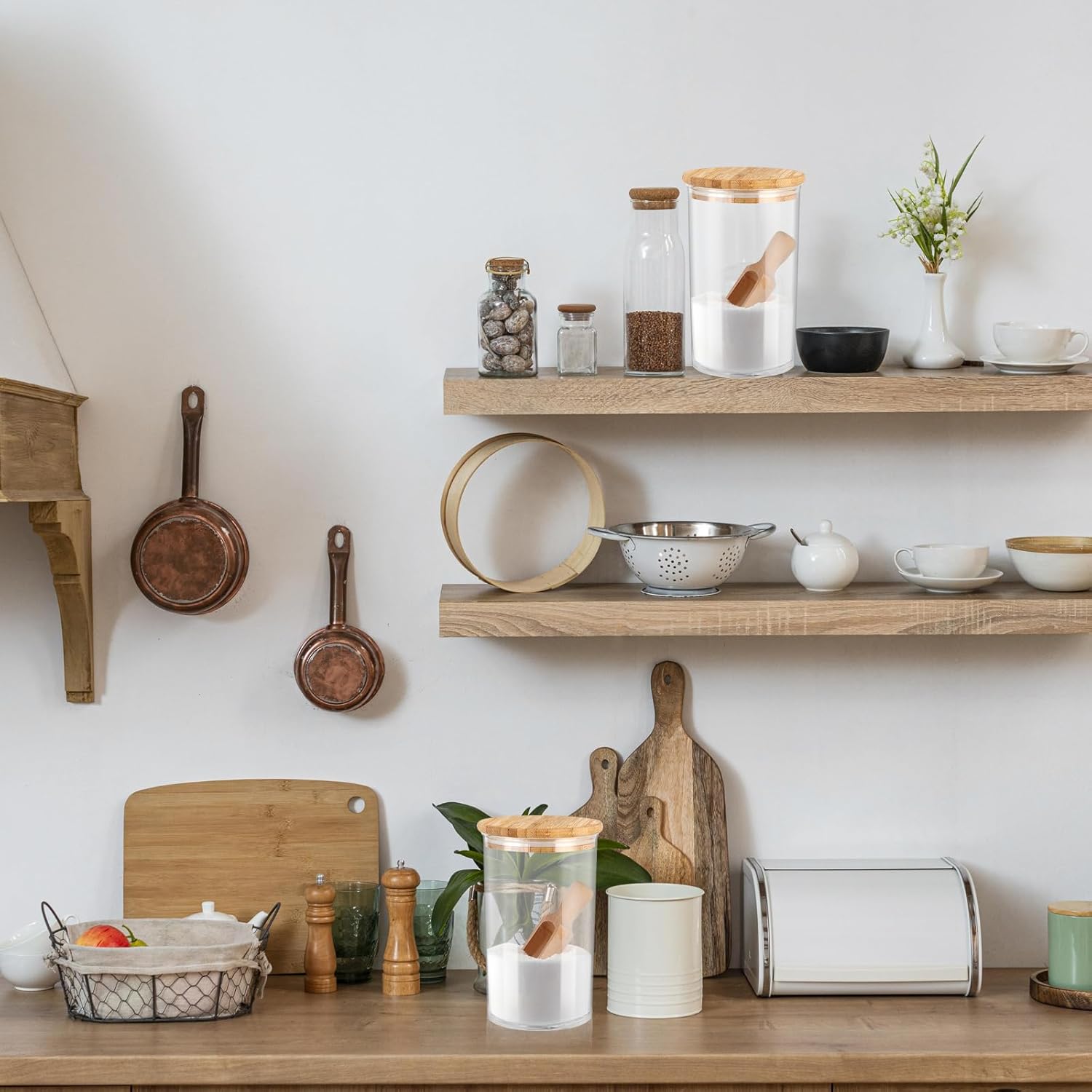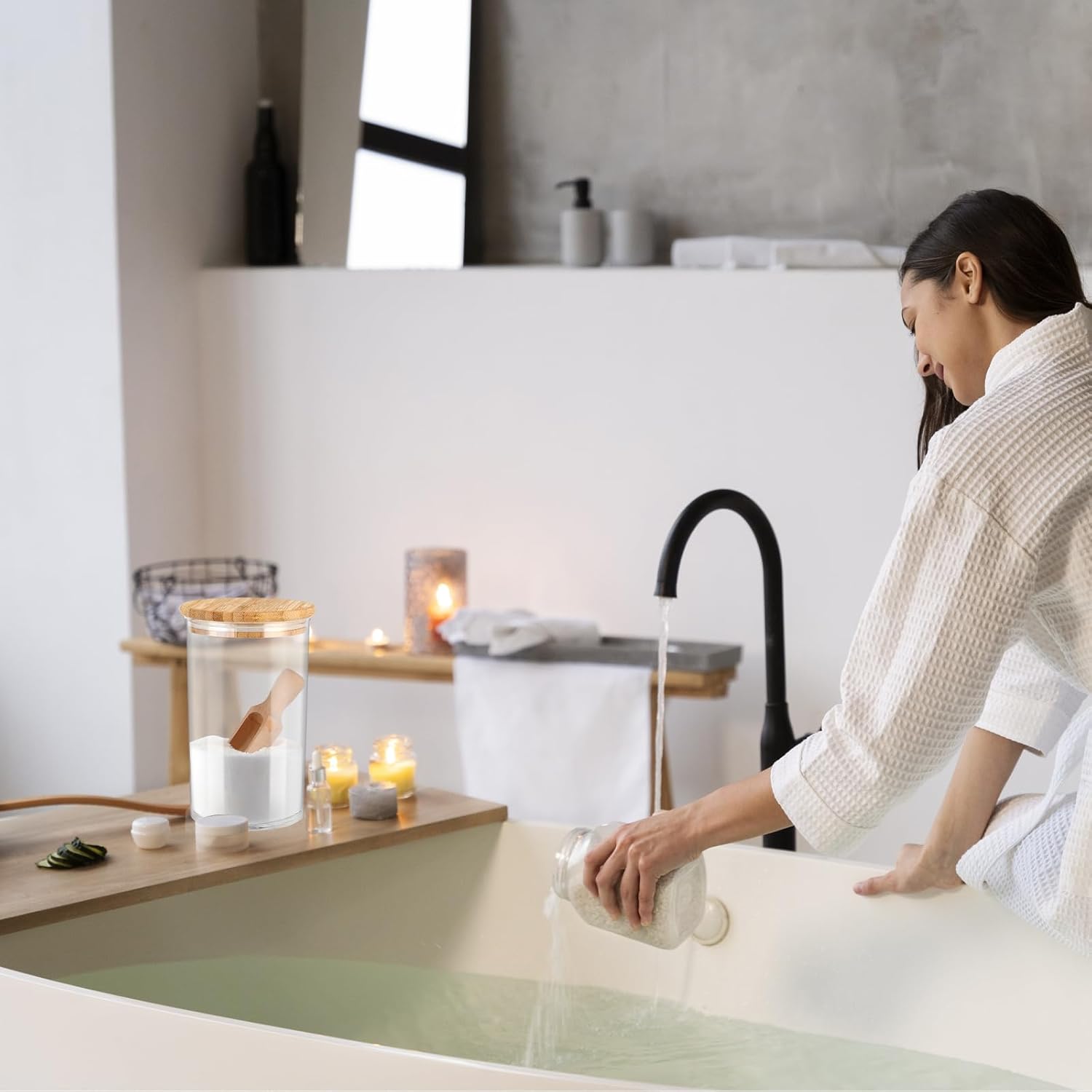42oz Acrylic Bath Salt Jar with Wooden Scoop Flour Containers with Lids Airtight Epsome Salt Bath for Bathroom Kitchen(Hold 42 Ounces of Bath Salt)
