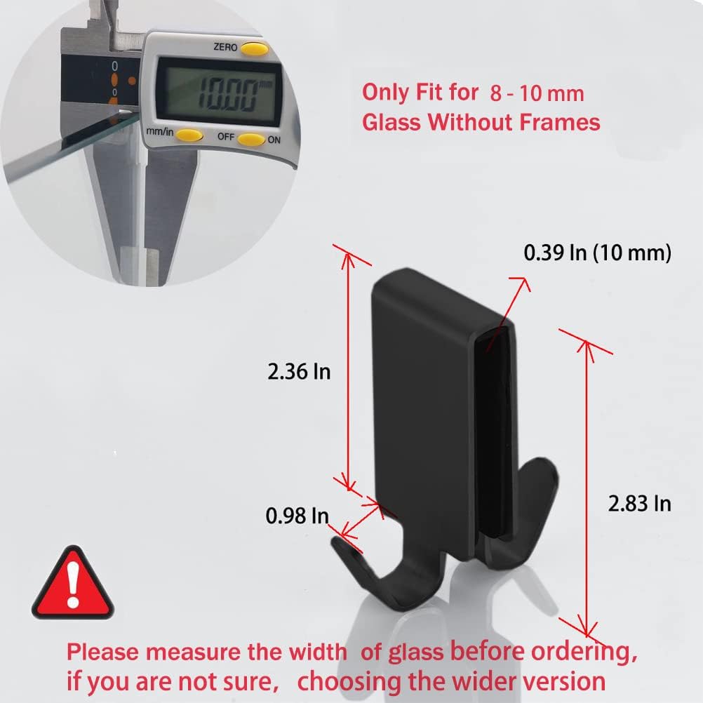- Suitable over glass wall or glass door thickness 0.31-0.39in (8-10mm),please measure before ordering.If you are not sure of the thickness of glass,please choose the hook with wider version ,thank you