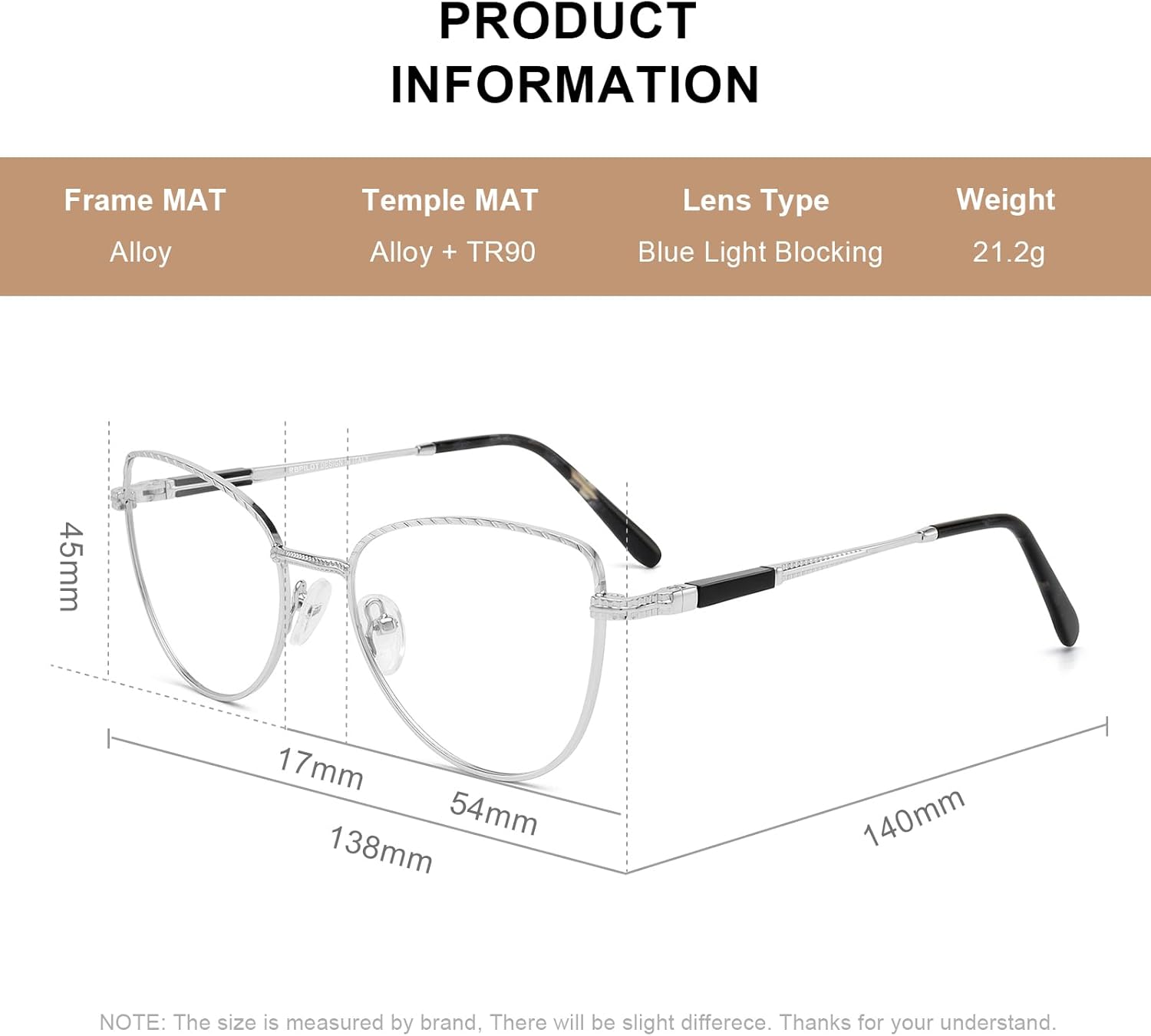 - 【PRODUCT SIZE】- Lens Width: 54mm(2.13inches) | Lens Height: 45mm(1.77inches) | Nose Bridge: 17mm(0.67inches) | Temple Length: 140mm(5.51inches).