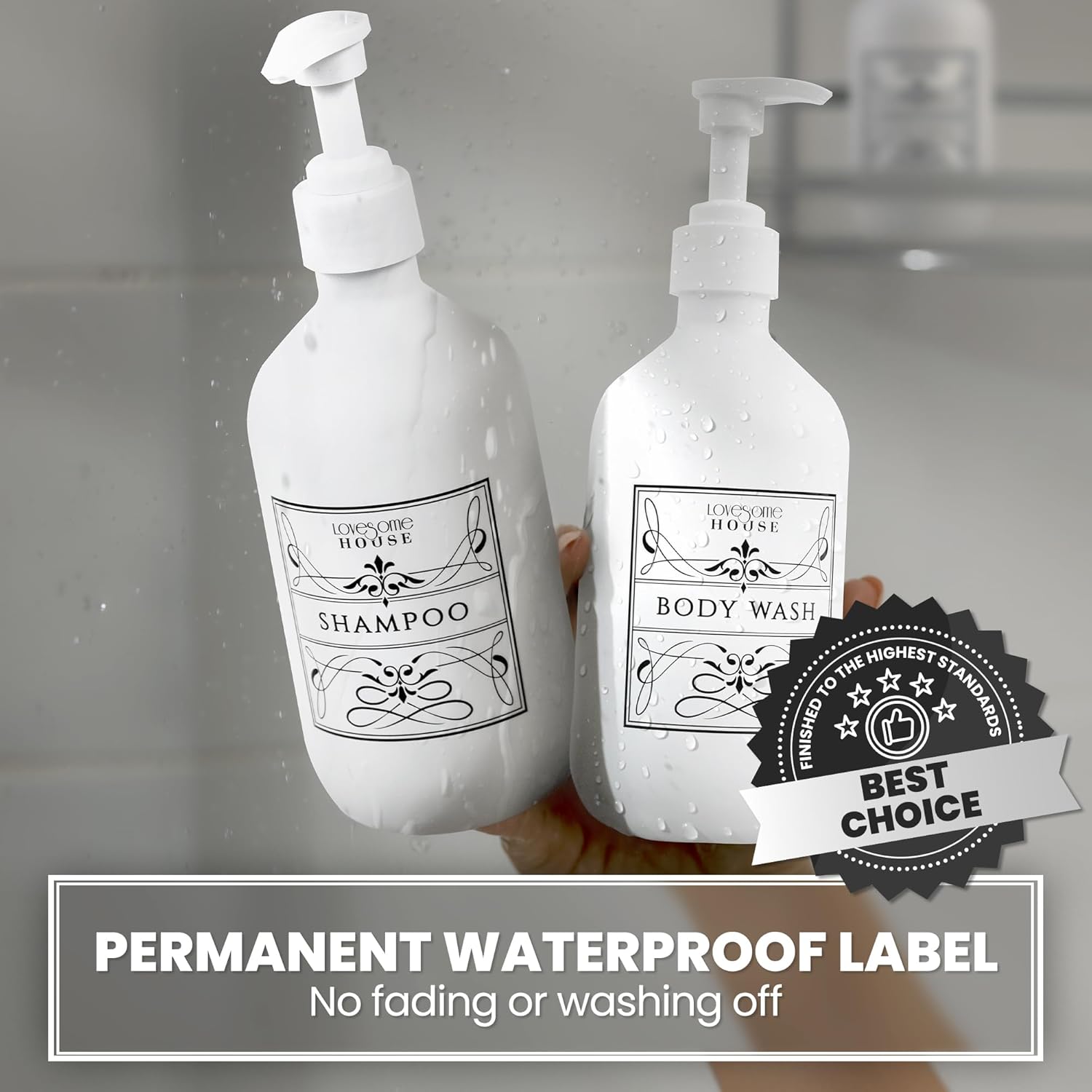 - Permanent, Waterproof, Luxury-grade Labels - With a focus on premium quality and convenience, our large decorative reusable shampoo conditioner dispenser bottles have been finished to the highest standards to ensure that the unique design elements will stay put and you don't have to worry about them fading or washing off.