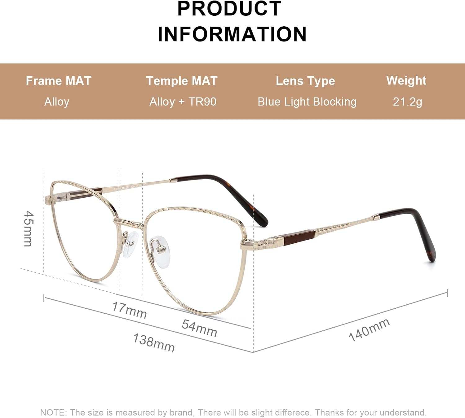 • 【PRODUCT SIZE】- Lens Width: 54mm(2.13inches) | Lens Height: 45mm(1.77inches) | Nose Bridge: 17mm(0.67inches) | Temple Length: 140mm(5.51inches).