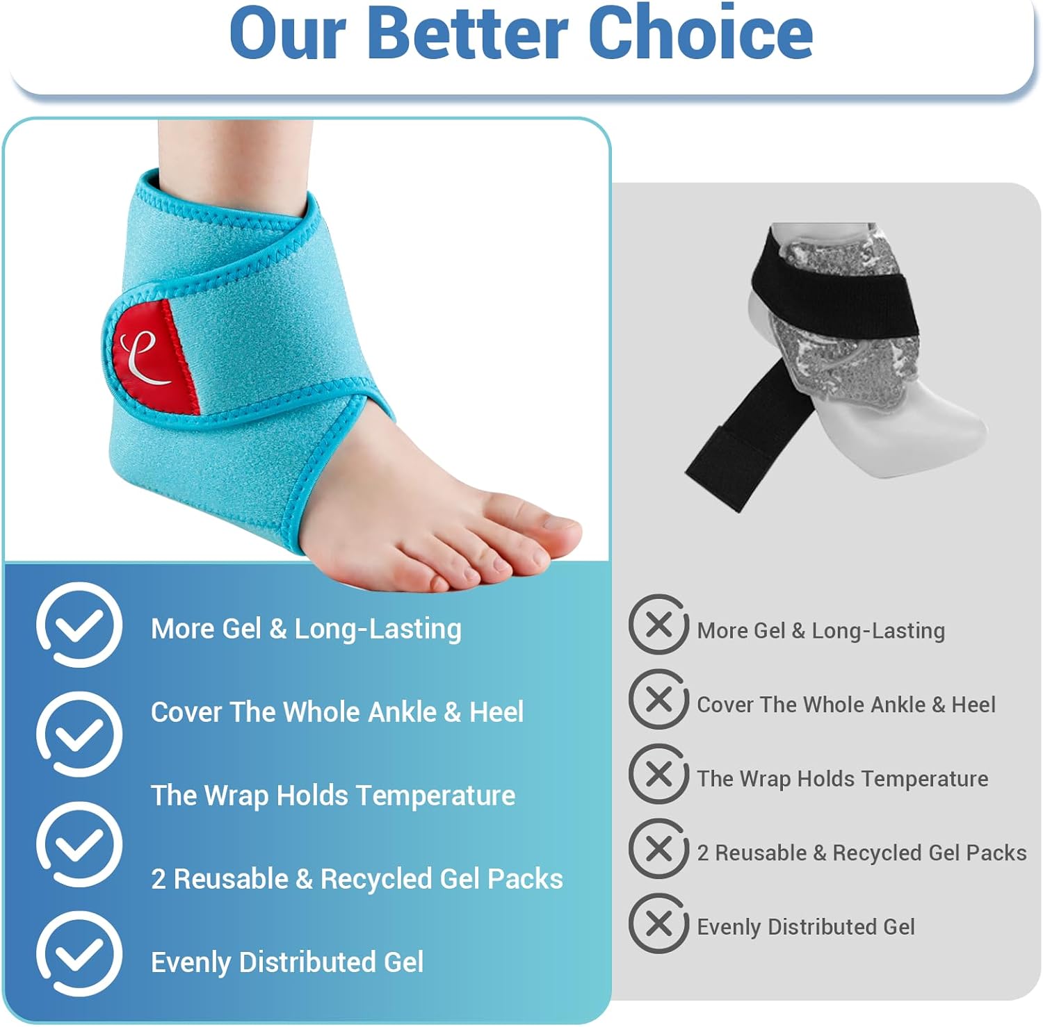 Comfytemp Ankle Ice Pack Wrap Brace for Swelling, Foot Pain Relief, HSA Store, 2 Gel Packs for Injuries Reusable, Hot Cold Compress for Plantar Fasciitis, Heel Spur, Achilles Tendonitis, Surgery Gift